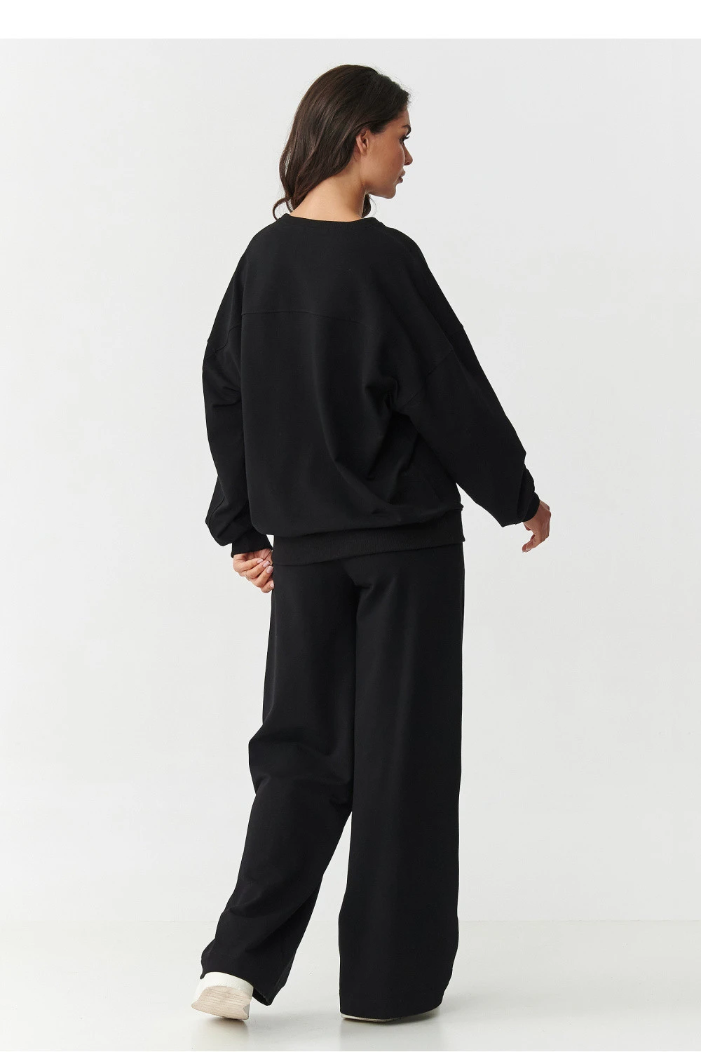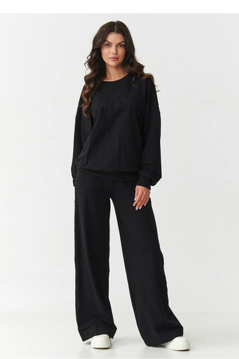 Vsadte na spojení pohodlí a módního vzhledu s dámským teplákovým kompletem, který je ideální jak na každodenní nošení, tak i na volné výlety nebo relaxaci doma. Vyrobený z měkké, prodyšné látky z 95% bavlny a 5% elastanu, zaručuje pohodlí při nošení a skvělé přizpůsobení postavě bez omezení pohybu. Horní část setu je klasická mikina s kulatým výstřihem a jemně sníženými rameny. Má lehce oversized střih, který stylizaci dodává uvolněnost a moderní charakter. Její výjimečnost zdůrazňuje vyšívaná aplikace s logem na přední straně, která celku dodává originalitu a jemný styl. Kalhoty se vyznačují módním střihem s širokými nohavicemi, které se krásně usazují při pohybu a dodávají postavě lehkost a vyvažují proporce. Elastický pás a praktické kapsy zvyšují funkčnost a pohodlí nošení. Ideální volba na každé roční období, teplákový set s širokými nohavicemi a vyšíváním je must-have v ženském šatníku. Pohodlí, kvalita a módní vzhled v jednom setu!