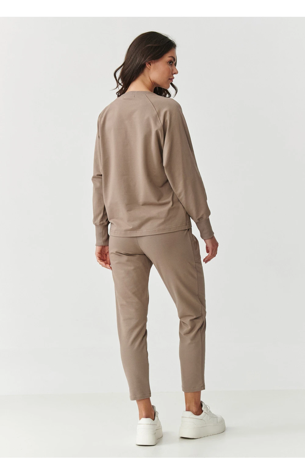Pohodlný a stylový dámský teplý set je ideální volbou pro ženy, které ocení pohodlí aniž by musely ustoupit od módního vzhledu. Vyrobený z vysoce kvalitního materiálu, kombinace bavlny a elastanu poskytuje měkkost, pružnost a odolnost, díky čemuž se skvěle hodí jak doma, tak na procházku, nákupy nebo do práce. Mikina má klasický, volný střih s dlouhými rukávy zakončenými pružnými lemy, které dodávají sportovní charakter. Kruhový výstřih zase zdůrazňuje její univerzálnost. Klasické kalhoty jsou pohodlné díky volnému střihu a vybavené praktickými velkými kapsami, které nejen skvěle vypadají, ale jsou také velmi funkční. Navíc na spodním lemu nohavic jsou záložky, které vytvářejí efekt jemného zužení směrem dolů. Tepláková souprava se nekrčí, dobře snáší praní a udržuje si svůj tvar, díky čemuž Ti bude sloužit po mnoho sezón.