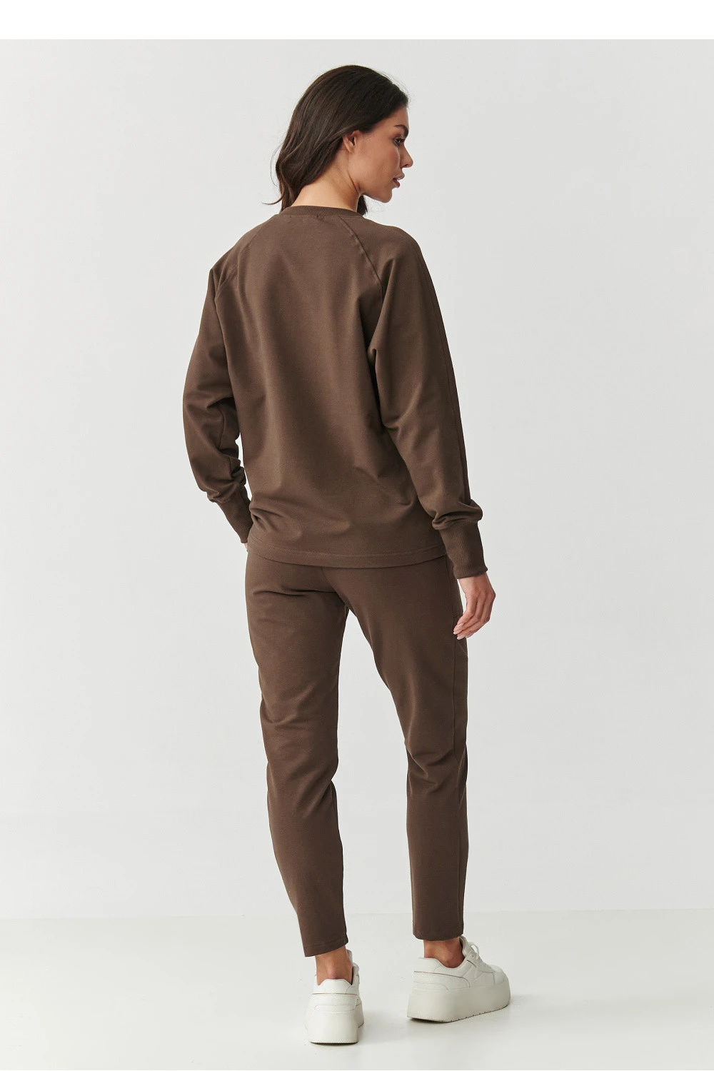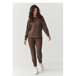 Pohodlný a stylový dámský teplý komplet je ideální nabídkou pro ženy, které ocení pohodlí bez ztráty módního vzhledu. Vyrobený z vysoce kvalitního materiálu, kombinace bavlny a elastanu zajišťuje měkkost, pružnost a odolnost, díky čemuž se skvěle hodí jak doma, tak na procházku, nákupy nebo do práce. Mikina má klasický volný střih s dlouhými rukávy zakončenými manžetami, které jí dodávají sportovní charakter. Kruhový výstřih dává najevo její univerzálnost. Klasické kalhoty jsou pohodlné díky volnému střihu a vybaveny praktickými velkými kapsami, které nejen skvěle vypadají, ale jsou také velmi funkční. Navíc je na spodním okraji nohavic záhyb, který vytváří jemné zužení k dolů. Teplý komplet se nemačká, dobře snáší praní a udržuje svůj tvar, díky čemuž ti poslouží po mnoho sezón.