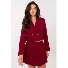 Dámský elegantní set skládající se z krátkého saka a sukně-šortek, ideální pro každodenní nošení, práci a setkání. Sako s límečkem, zapínání na knoflík, s vloženými polštářky na ramenou. Sukně-šortky mají skládaný přední díl a vložené kraťasy, které zajistí pohodlí a plnou volnost pohybu, a na zadní straně jsou vsazeny gumu pro lepší přizpůsobení. Vyrobeno z polyesterové směsi a elastanu, s hladkým vzorem, set spojuje eleganci s pohodlím nošení. Dlouhý rukáv saka a mini délka sukně-šortek dodávají outfitu moderní a ženský charakter. Jedná se o set, který spojuje eleganci, funkčnost a pohodlí, skvěle se hodící do mnoha každodenních i výjimečných stylizací.