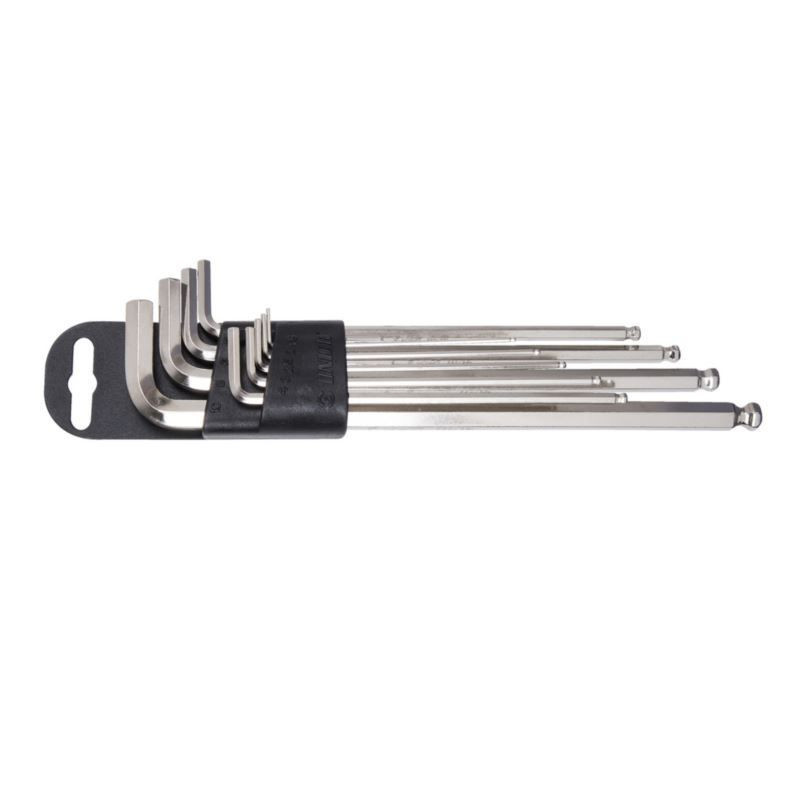 9x klucz imbusowy z kulką, długi (art. 220/3SL) rozm. 1.5, 2, 2.5, 3, 4, 5, 6, 8, 10 na plastikowym wieszaku.