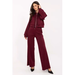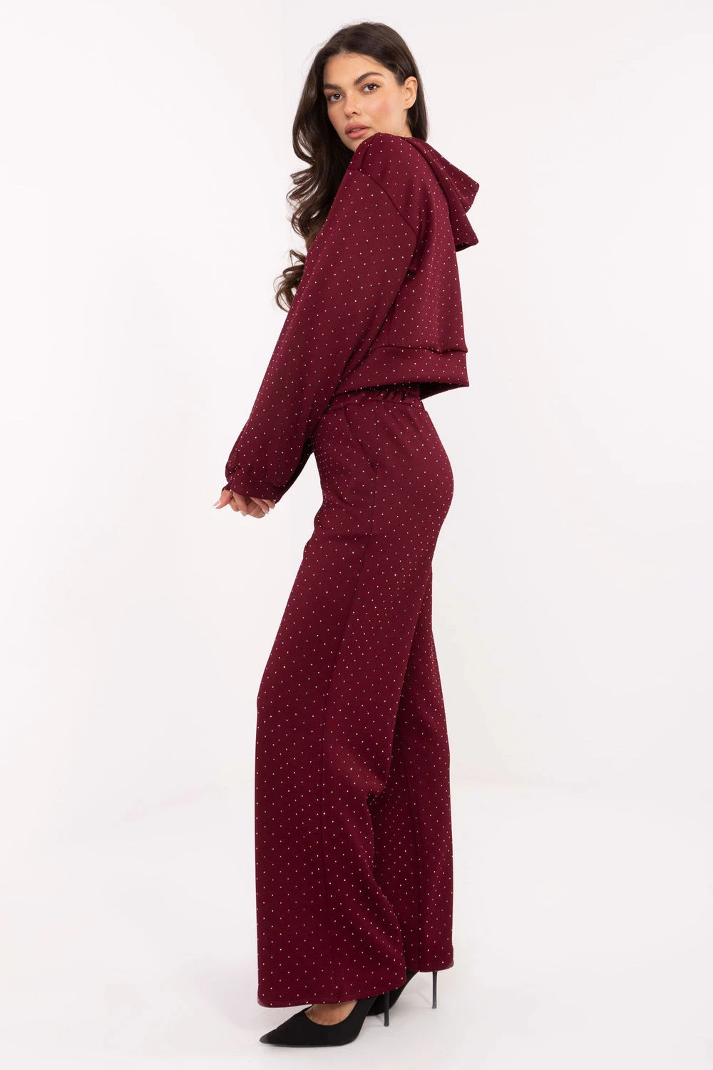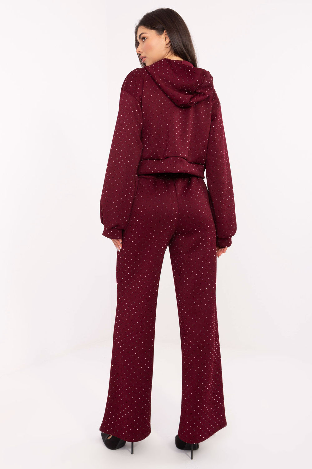 Modelka má na sobě velikost one size. Měření modelky: výška 173 cm, hrudník 85 cm, pas 62 cm, boky 95 cm. Měření soupravy ve velikosti one size: šířka pod pažemi - 56 cm, délka mikiny - 48 cm, délka rukávu - 58 cm (od švu), šířka v bocích - 52 cm, šířka kalhot v pasu - 33 cm (na plocho), šířka kalhot v pasu - 62 cm (po roztažení), šířka v bocích - 51 cm, délka kalhot - 106 cm.