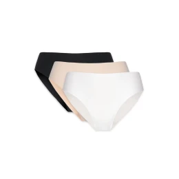 Trojpak bezšvových kalhotek. Bezšvový střih kalhotek zaručuje diskrétnost, kalhotky nejsou viditelné ani pod těsným oblečením. Pohodlný střih, ideální na každý den. Klin byl vyroben z příjemné a bezpečné bavlny pro intimní partie, díky čemuž jsou tanga bezpečné pro intimní partie.