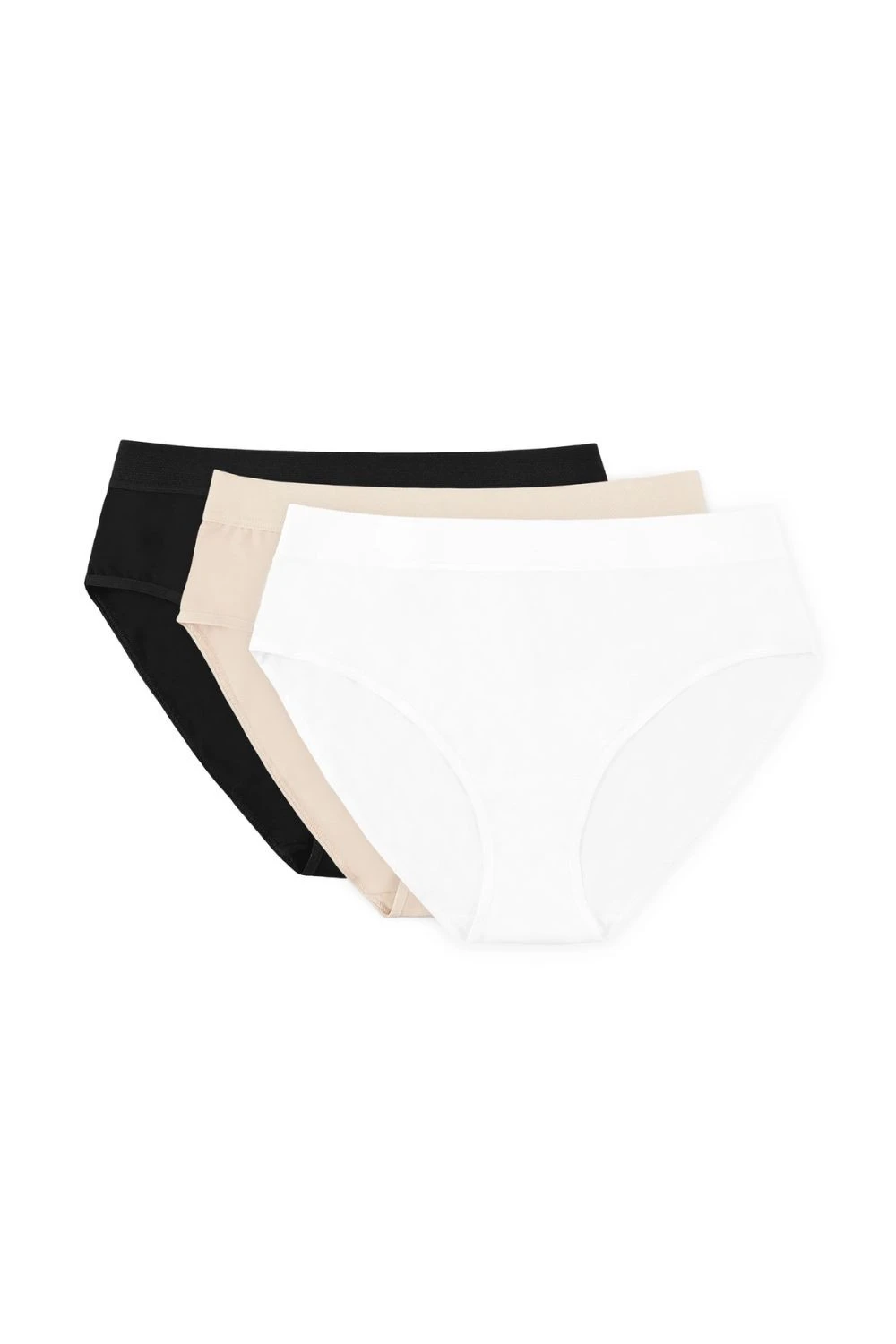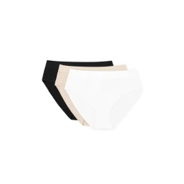 Trojpak fig v 3 univerzálních barvách, které ladí s každým oblečením: béžová, černá a bílá. Široký elastický pás dokonale udržuje spodní prádlo na svém místě. Pohodlný střih, který neomezuje pohyb, ideální pro každodenní nošení, i během menstruace. Kliny tanga jsou vyrobeny z bavlny s certifikací OEKO-TEX, což je příjemné a bezpečné pro intimní partie. Vyrobeno z 100% bavlny z polské přádelny. Tanga byly navrženy a ušity v Polsku.