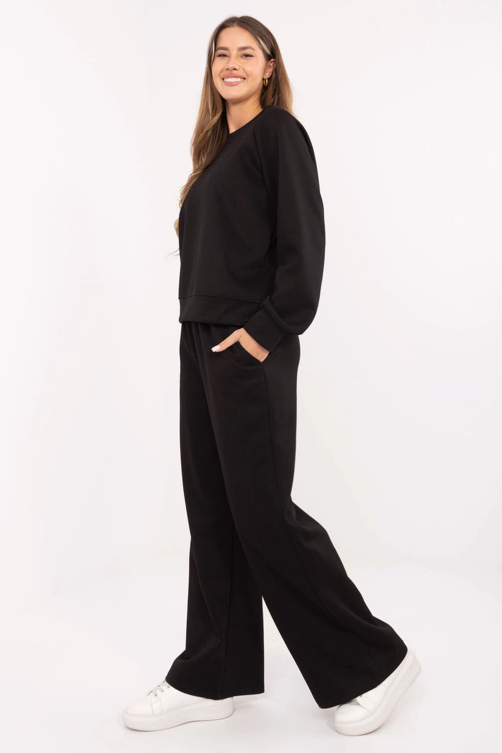 Dámský teplý set vyrobený z velmi měkkého materiálu typu "maslo" je ideální kombinací pohodlí a stylu pro každodenní nošení. Tkanina z viskózy, polyesteru a elastanu je mimořádně jemná, elastická a příjemná na dotek, díky čemuž se tento set skvěle hodí jak doma, tak i ve městě. Set se skládá z volného, ležérního topu a kalhot s vysokým pasem, ve kterých je gumový stahovací pás zaručující perfektní přizpůsobení postavě. Široké nohavice dodávají celému setu lehkost a moderní vzhled, zatímco boční kapsy zdůrazňují praktický charakter outfitu.
