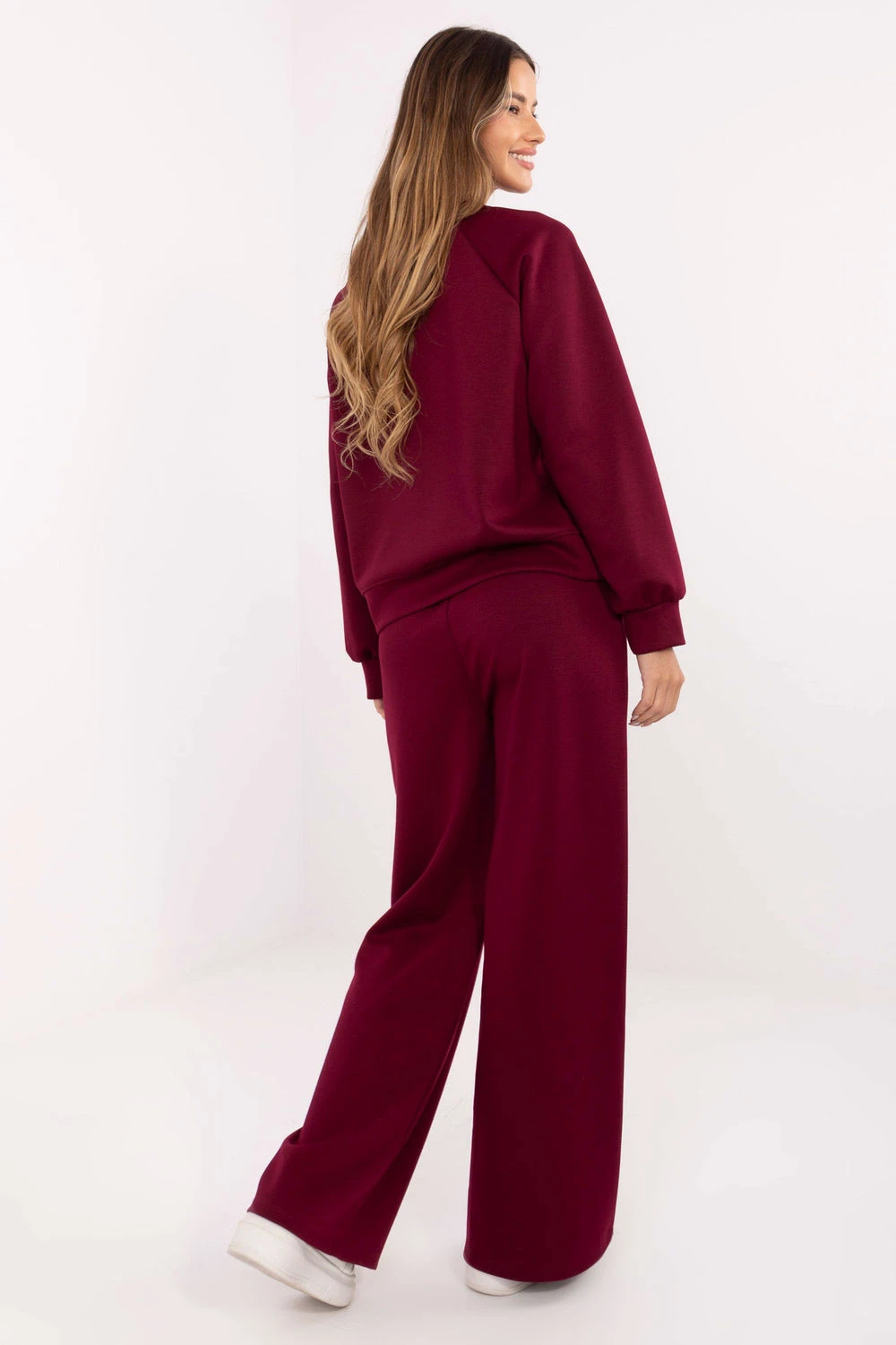 Dámský teplý set vyrobený z velmi měkkého materiálu typu flís je ideální kombinací pohodlí a stylu pro každodenní nošení. Tkanina z směsi viskózy, polyesteru a elastanu je neuvěřitelně jemná, elastická a příjemná na dotek, díky čemuž se set skvěle hodí jak doma, tak i při vycházkách do města. Set se skládá z volného, casualového topu a kalhot s vysokým pasem, ve kterých je gumový pás zaručující dokonalé přizpůsobení siluetě. Široké nohavice dodávají celému outfitu lehkost a moderní vzhled, a boční kapsy zdůrazňují praktický charakter setu.
