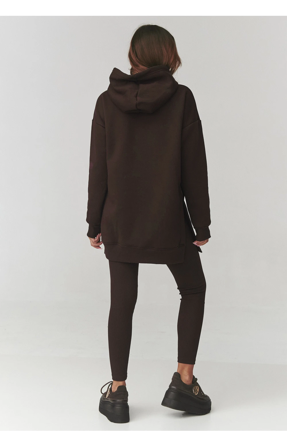 Vsadte na pohodlí a styl v jednom! Náš dámský set se skládá z delší mikiny s kapucí a legín ve stejném barevném provedení. Mikina má módní oversized střih a praktickou kapsu typu klokánek, ve které si zahřejete ruce nebo schováte drobnosti. Vysoce kvalitní, měkká pletenina zaručuje pohodlí po celý den, ideální jak pro každodenní stylizace, tak na volné víkendy doma. Legíny se přizpůsobí postavě, zdůrazňují její přednosti a pružný materiál zaručuje plnou volnost pohybu. Set můžete nosit společně nebo samostatně, vytvářejíce nekonečné, módní stylizace.