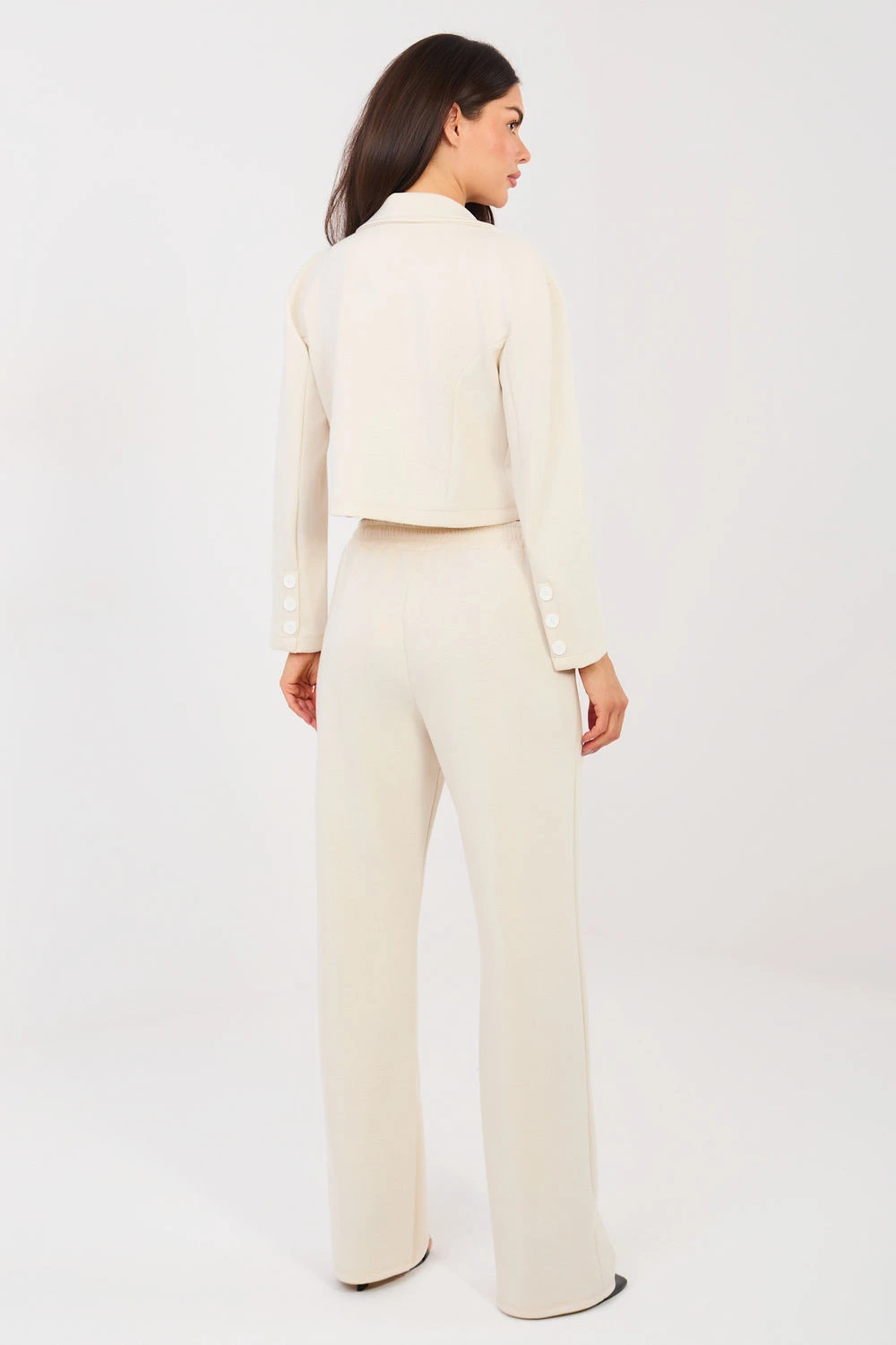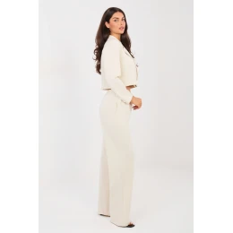 Elegantní dresový set: sako a kalhoty, které spojují eleganci s každodenním pohodlím. Vyrobena z velmi příjemného materiálu typu měkké máslo, jemného a hladkého, poskytuje maximální pohodlí nošení a skvělé přizpůsobení postavě. Sako s límci a límečkem, zapíná se na knoflíky, dodává celému outfitu moderní, casualový charakter. Dlouhý rukáv zdobený knoflíky je stylovým detail, který zdůrazňuje precizní zpracování. Kalhoty s vysokým pasem, dlouhé, přímé nohavice a vázaným pásem zaručují pohodlí a volnost pohybu. Model je vybaven bočními kapsami, které zvyšují funkčnost setu. Hladký vzor a pečlivě vybraná směs polyesteru, viskózy a elastanu zajišťují, že set se skvěle hodí jak do každodenních stylizací, tak do práce v moderním, pohodlném provedení. Je to ideální nabídka pro ženy, které ocení styl, pohodlí a univerzálnost v jednom setu.