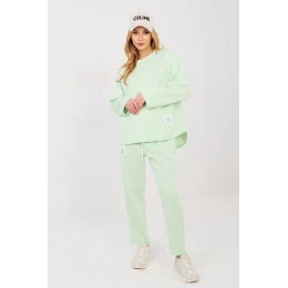 Dámský teplý set skládající se z mikiny a kalhot je ideální volbou pro každodenní outfit ve stylu casual, kombinující pohodlí s minimalistickým designem. Hladký střih dělá set univerzálním a skvěle se hodí jak do domácího prostředí, tak i na vycházky do města nebo ven. Set je vyroben z vysoce kvalitní směsi polyesteru, viskózy a elastanu. Materiál je velmi měkký, jemný a příjemný na dotek, poskytující maximální pohodlí při nošení. Mikina s dlouhým rukávem a klasickým kulatým výstřihem má decentní nášivku umístěnou dole na přední straně vlevo, která dodává celému outfitu moderní nádech. Kalhoty s dlouhou délkou a se zužujícími se nohavicemi skvěle padnou na postavu. Vysoký pas a šňůrky na stahování umožňují ideální přizpůsobení, a boční kapsy zvyšují funkčnost setu.