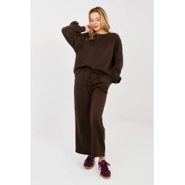 Stylový dámský set skládající se z mikiny a kalhot, ideální pro každodenní outfit v casual stylu. Vyrobený z měkké a příjemné viskózy s přídavkem elastanu, který zajišťuje pohodlí při nošení a volnost pohybu po celý den. Mikina s dlouhým střihem má kulatý výstřih a dlouhý rukáv ozdobený jemnou textilní růží na zápěstí, která dodává celku ženský a originální charakter. Kalhoty s vysokým pasem a přímými nohavicemi zaručují pohodlí a nadčasový vzhled. V pase je vsazena guma a šňůrky na stahování, umožňující ideální přizpůsobení postavě. Další výhodou jsou boční kapsy, které zvyšují funkcionalitu setu. Hladký vzor činí set univerzální a snadno kombinovatelný, skvělý jak na procházky, tak na běžné nošení. Toto je nabídka pro ženy, které oceňují pohodlí, styl a jemné detaily.