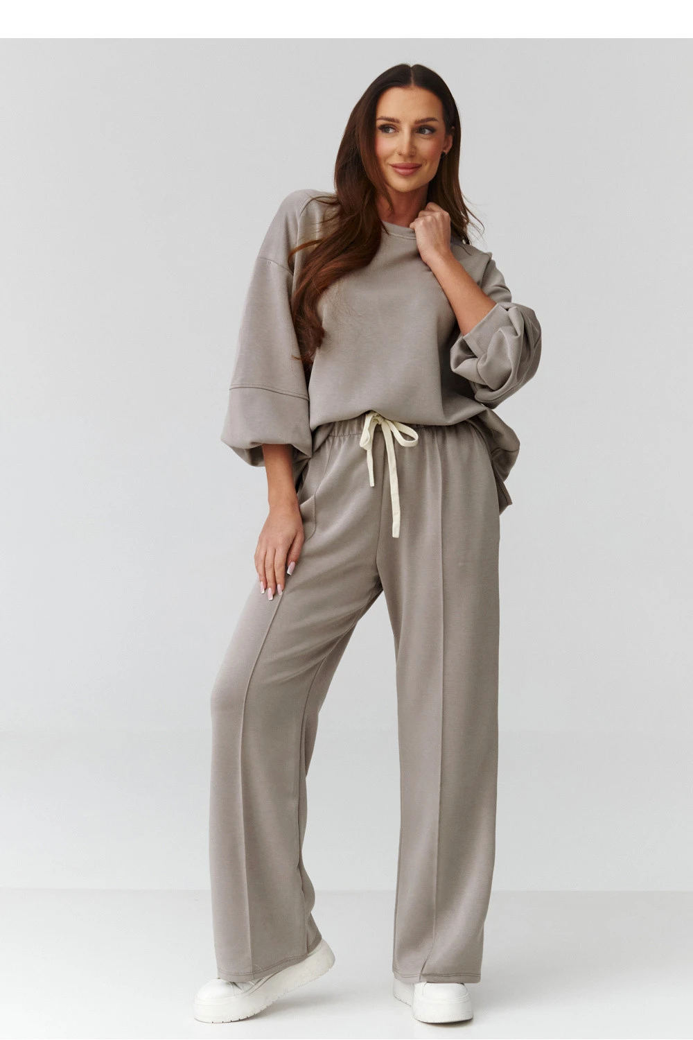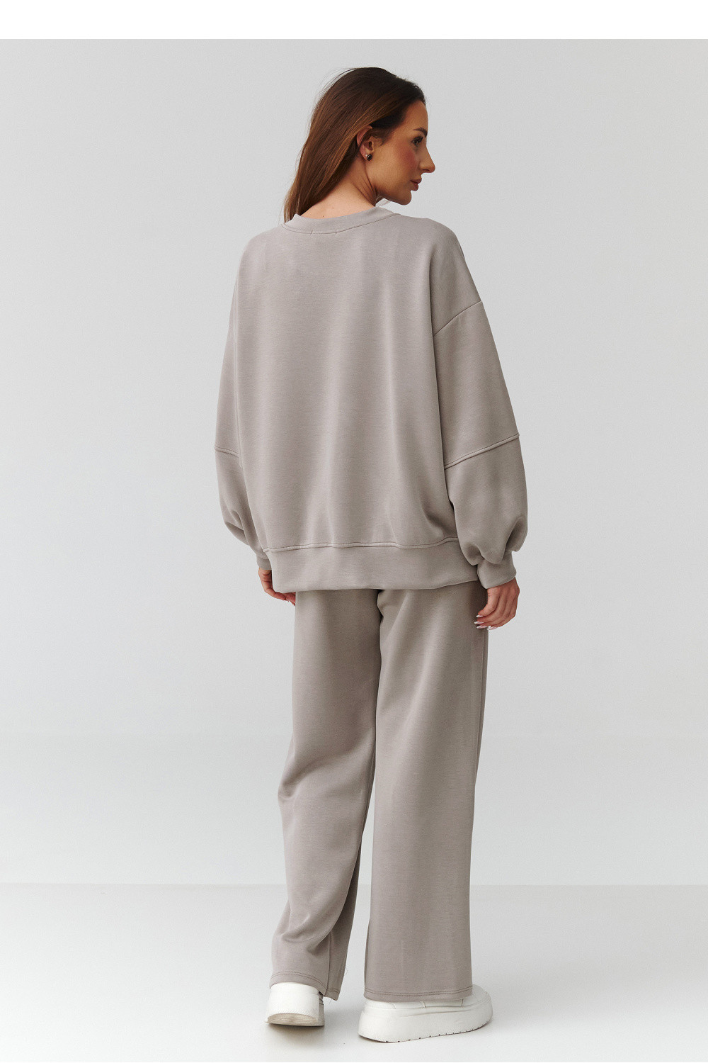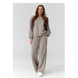 Moderní a pohodlný dámský oversize komplet, který se skvěle hodí do každodenních stylizací. Souprava se skládá z volné mikiny s oversized střihem a pohodlných kalhot s přímou nohavicí, vytvářející souvislý a stylový celek. Komplet je vyroben z měkkého, příjemného na dotek materiálu, který zajišťuje pohodlí po celý den. Kalhoty mají kapsy a elastický pas s šňůrkou, díky čemuž se snadno přizpůsobují siluetě. Univerzální oversized střih se hodí k různým typům postav, a decentní barvy dodávají soupravě elegantní, nadčasový charakter. Vyrobeno v Itálii.