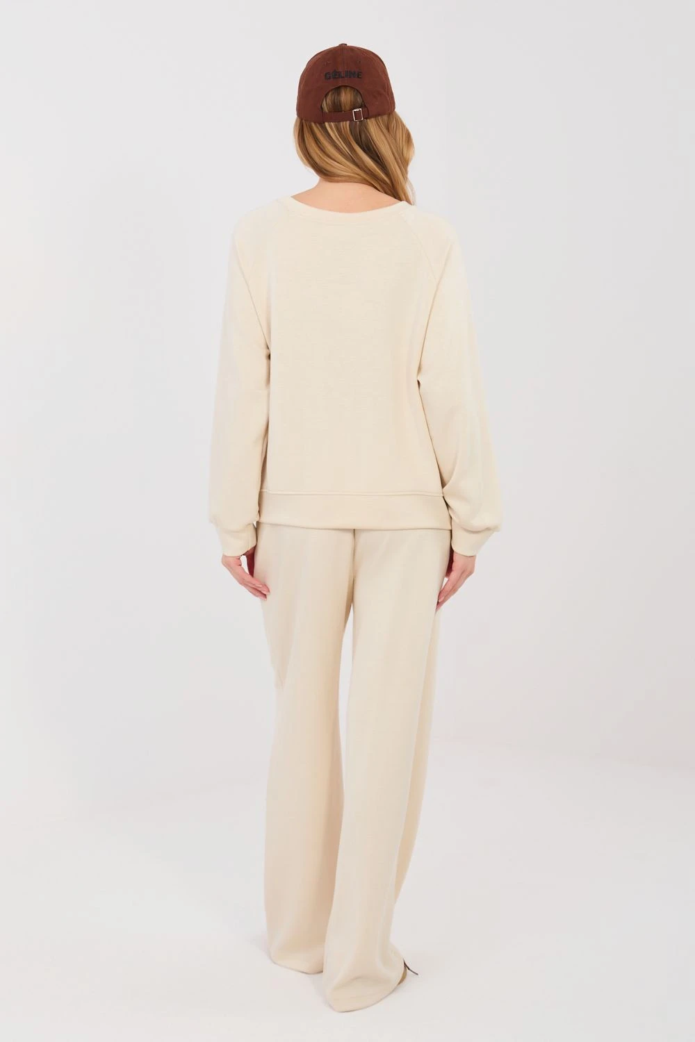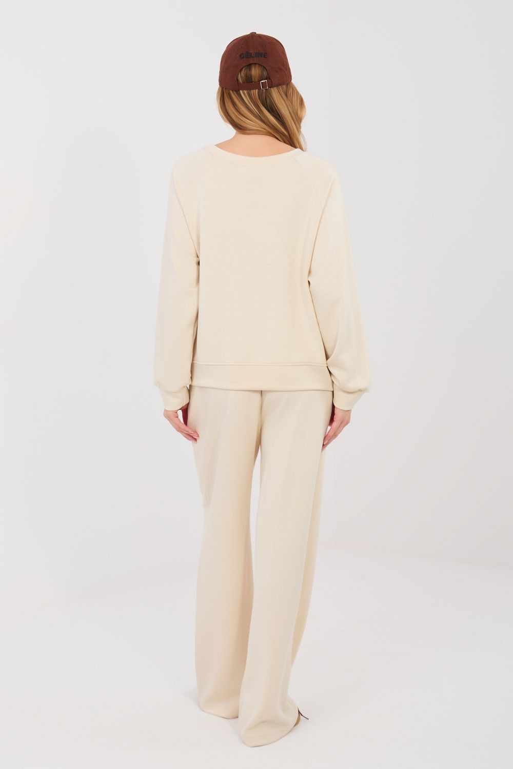 Dámská souprava se skládá z měkkého materiálu typu "máslo", což je ideální kombinace pohodlí a stylu pro každodenní nošení. Tkanina z viskózy, polyesteru a elastanu je mimořádně jemná, elastická a příjemná na dotek, díky čemuž je souprava skvělá jak doma, tak i při vycházkách do města. Souprava se skládá z volného, casualového topu a kalhot s vysokým pasem, ve kterých je vsazena guma, která zajistí ideální přizpůsobení postavy. Široké nohavice dodávají celku lehkost a moderní vzhled, a boční kapsy zdůrazňují praktický charakter soupravy.