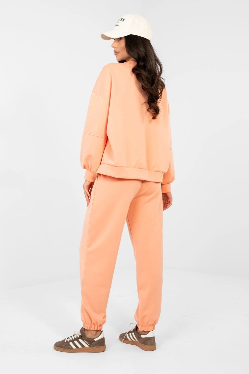Elegantní set trenýrek v casualovém provedení je ideálním návrhem pro každodenní styling. Hladký vzor mu dodává univerzální charakter, díky čemuž se skvěle hodí jak k relaxaci, procházkám, tak i do městských outfitů. Mikina s dlouhým rukávem a kulatým výstřihem poskytuje pohodlí a nadčasový vzhled. Další výhodou je decentní nášivka umístěná na levém rukávu, která dodává celku moderní akcent. Kalhoty s dlouhými nohavicemi zakončenými lemy se skvěle přizpůsobují postavě. Vysoký pas zdůrazňuje pas a zvyšuje pohodlí nošení, boční kapsy s kapsami dodávají funkčnost. Set je vyroben z měkké a elastické směsi viskózy a elastanu, což zaručuje pohodlí nošení, volnost pohybů a ideální přizpůsobení postavě. Jedná se o pohodlný a stylový set na každý den. Materiál typu máslo je měkký, jemný a mimořádně příjemný na dotek.
