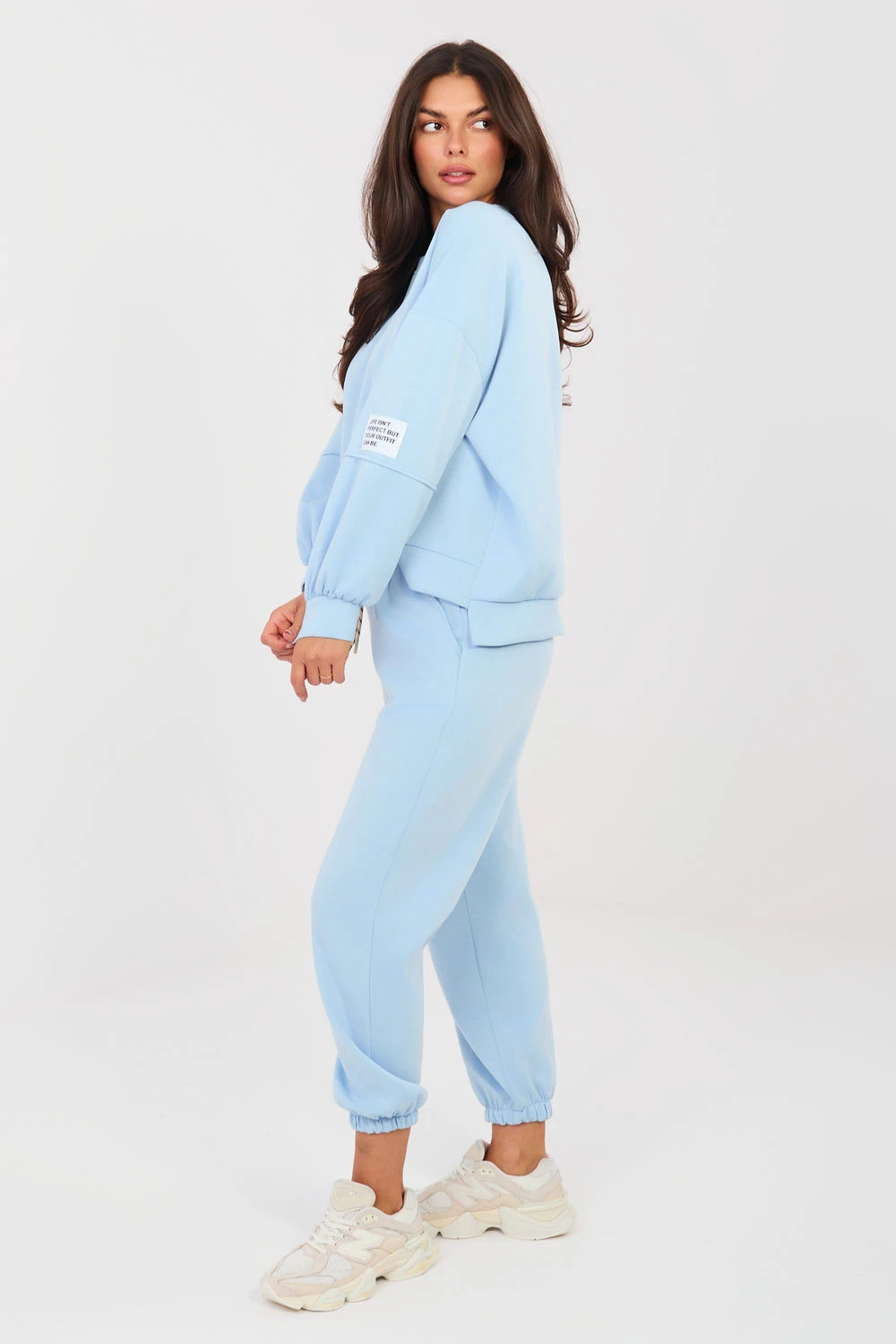 Elegantní dresový set v casualovém provedení je ideální volbou pro každodenní outfit. Hladký vzor mu dodává univerzální charakter, díky čemuž se skvěle hodí jak při relaxaci, procházkách, tak i ve městských outfitech. Mikina s dlouhým rukávem a kulatým výstřihem poskytuje pohodlí a nadčasový vzhled. Další výhodou je decentní nášivka umístěná na levém rukávu, která celému outfitu dodává módní akcent. Kalhoty s dlouhými nohavicemi ukončenými stahovacími pásy se dokonale přizpůsobí postavě. Vysoký pas zdůrazňuje pas a zvyšuje pohodlí nošení, a boční kapsy přidávají funkčnost. Set je vyroben z měkké a elastické směsi viskózy a elastanu, což zaručuje pohodlí při nošení, volnost pohybů a ideální přizpůsobení postavě. Je to pohodlný a stylový set na každý den. Látka typu butter je měkká, jemná a mimořádně příjemná na dotek.