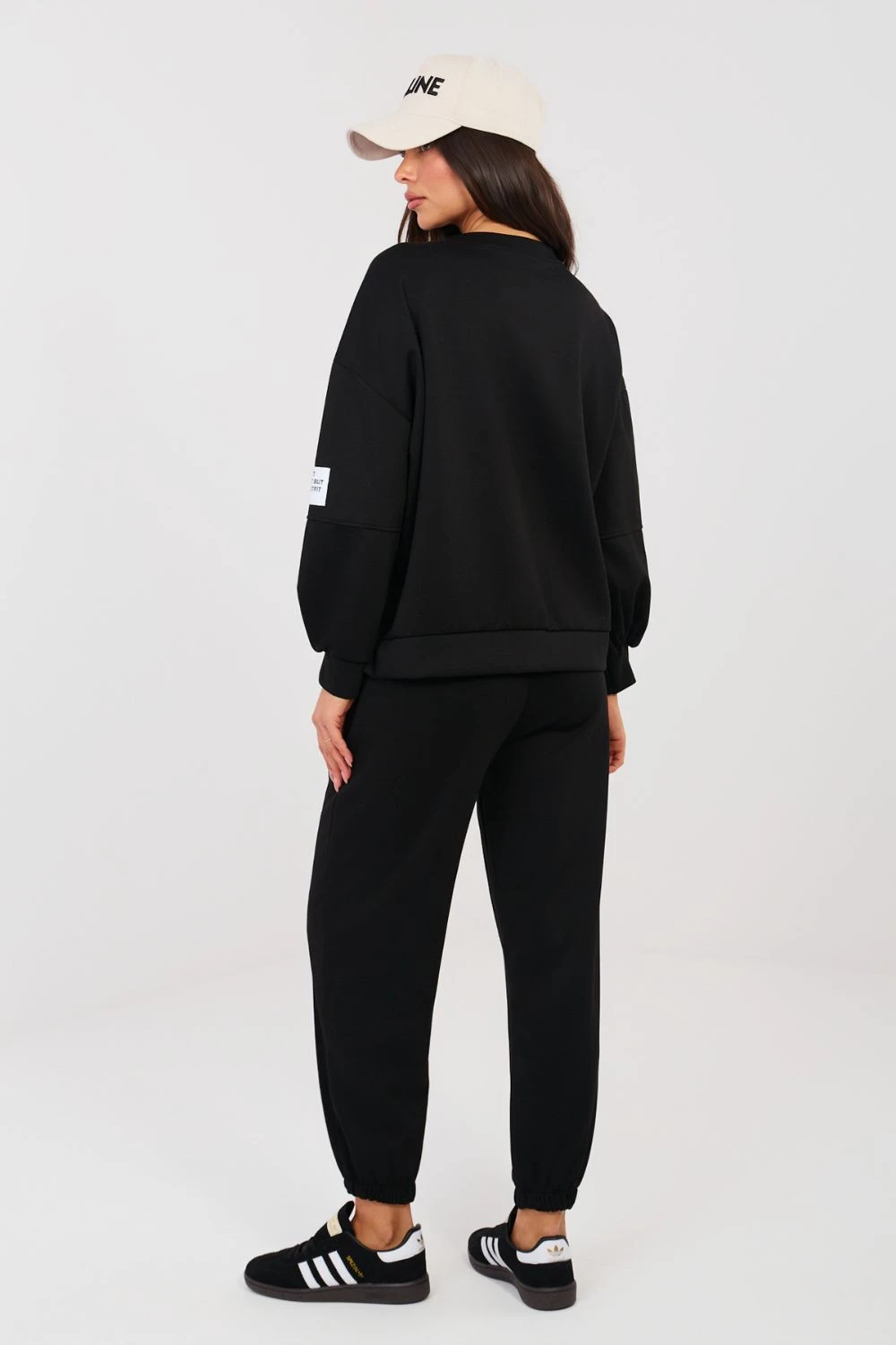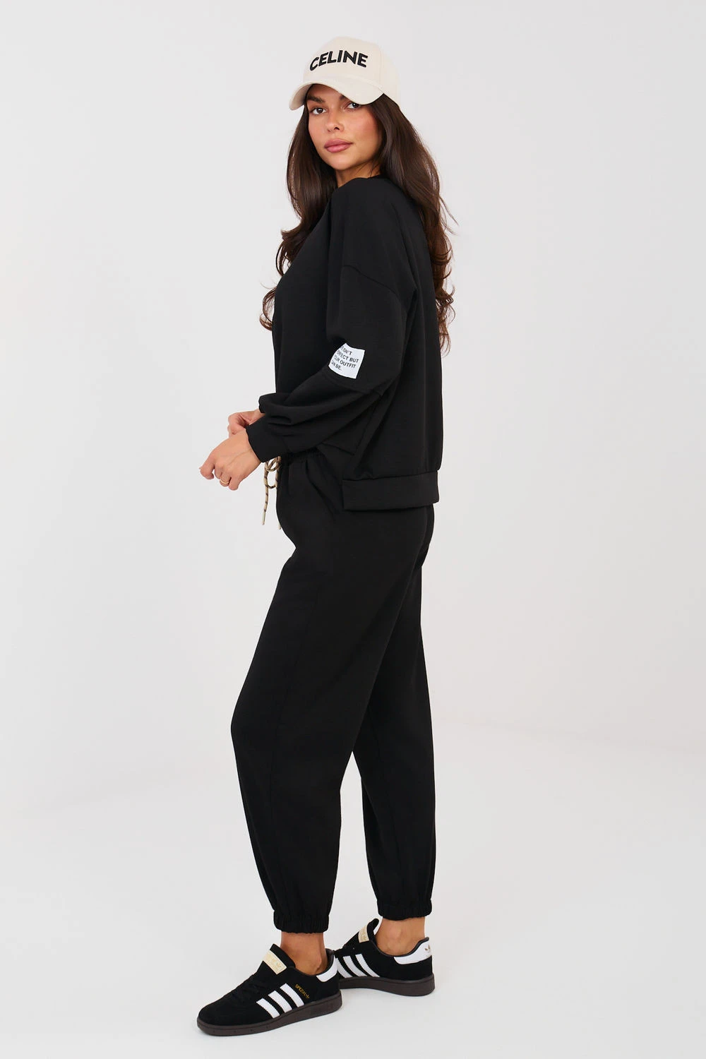 Stylová tepláková sada v casualovém provedení je ideální volbou pro každodenní outfit. Hladký vzor mu dodává univerzální charakter, díky čemuž se skvěle hodí jak při relaxaci, procházkách, tak i ve městských outfitech. Mikina s dlouhým rukávem a okrouhlým výstřihem poskytuje pohodlí a nadčasový vzhled. Další výhodou je decentní nášivka umístěná na levém rukávu, která celku dodává módní akcent. Kalhoty s dlouhými nohavicemi zakončenými na bocích dokonale padnou k postavě. Vysoký pas zdůrazňuje pas a zvyšuje pohodlí nošení, a boční kapsy přidávají funkčnost. Sada je vyrobena z měkké a elastické směsi viskózy a elastanu, což zaručuje pohodlnost nošení, volnost pohybů a ideální přizpůsobení se postavě. Jedná se o pohodlný a stylový outfit na každý den. Materiál typu "máslo" je měkký, jemný a mimořádně příjemný na dotek.