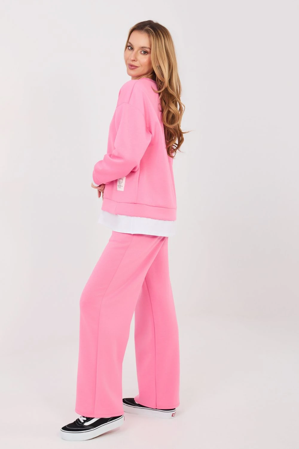 Sada oblečení ve stylu casual je skvělou volbou pro každodenní nošení pro ženy, které oceňují pohodlí a moderní minimalismus. Hladký vzor zdůrazňuje univerzální charakter setu, díky čemuž se skvěle hodí jak na každodenní vycházky, tak i domácí pohodu. Vyrobený z vysoce kvalitní směsi polyesteru, viskózy a elastanu, sada poskytuje pohodlí nošení, elasticitu a příjemné přizpůsobení se postavě. Materiál je měkký, odolný a odolný proti mačkání, což zajišťuje, že sada zachovává estetický vzhled po dlouhou dobu. Mikina s dlouhým rukávem je zakončena kontrastními vložkami, které dávají celku módní charakter. Dalším akcentem je nášivka umístěná vpředu, na levé straně dole, zdůrazňující moderní styl setu. Kalhoty s dlouhou délkou a přímými nohavicemi a vysokým pasem krásně tvarují postavu a zajišťují pohodlí nošení. V pasu jsou šňůrky k zavázání, umožňující ideální přizpůsobení, a boční kapsy zvyšují funkčnost setu. Jedná se o stylovou a praktickou sadu, která spojuje pohodlí s nadčasovou jednoduchostí.
