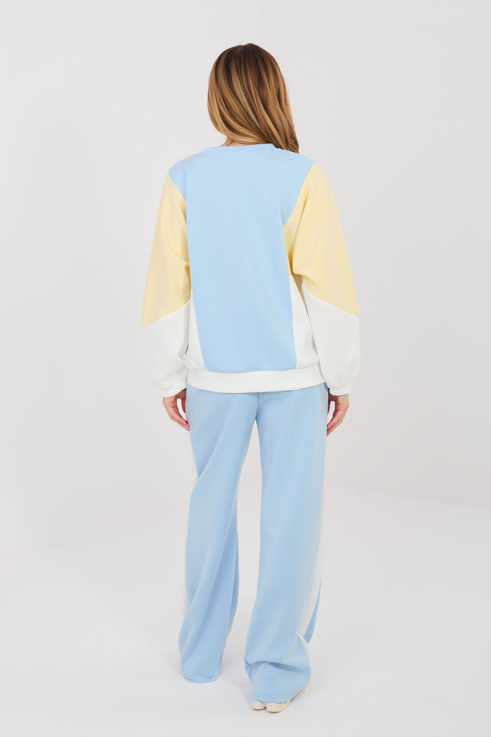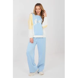 Mimořádně pohodlný dámský teplákový set vyrobený z materiálu typu měkký máslo, který je neuvěřitelně měkký, jemný a příjemný na dotek. Tkanina z polyesteru, viskózy a elastanu je elastická, lehce padající a dokonale se přizpůsobuje postavě, poskytující maximální pohodlí při každodenním nošení. Set se skládá z mikiny s dlouhým rukávem a kalhot s širokými, dlouhými nohavicemi. Mikina s klasickým kulatým výstřihem je zdobena efektním nápisem s flitry, který dodává celku moderní a ženský charakter. Kalhoty s vysokým pasem krásně zdůrazňují pas a zajišťují pohodlí při nošení. V pasu jsou šňůrky k zavázání, umožňující ideální přizpůsobení postavě. Praktické boční kapsy zvyšují funkčnost a široké nohavice dodávají stylingu volný a moderní vzhled. Jedná se o ideální set pro ženy, které ocení kombinaci mimořádné měkkosti, pohodlí a moderních detailů ve svých každodenních outfitech.