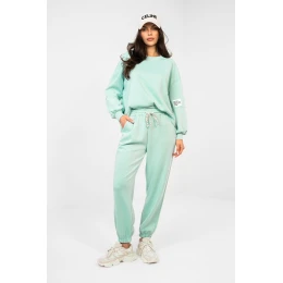 Stylový teplákový set v casualovém provedení je ideální volbou pro každodenní stylizace. Hladký vzor mu dodává univerzální charakter a skvěle se hodí jak k relaxaci, procházkám, tak i do městských outfitů. Mikina s dlouhým rukávem a kulatým výstřihem zajistí pohodlí a nadčasový vzhled. Další výhodou je decentní nášivka umístěná na levém rukávu, která celku dodává módní akcent. Kalhoty s dlouhými nohavicemi zakončenými manžetami se skvěle přizpůsobí postavě. Vysoký pas zdůrazňuje pas a zvyšuje pohodlí nošení, a boční kapsy přidávají funkcionalitu. Set je vyroben z měkké a elastické směsi viskózy a elastanu, což zaručuje pohodlí, volnost pohybů a ideální přizpůsobení postavě. Jedná se o pohodlný a stylový set na každý den. Materiál typu měkké máslo je jemný a mimořádně příjemný na dotek.