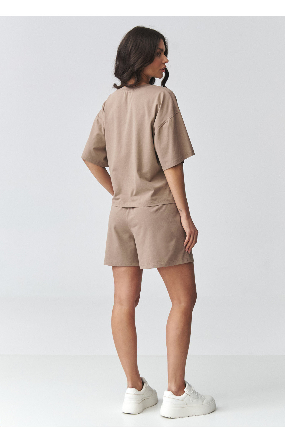 Elegantní dámský set skládající se z volného topu s krátkým rukávem a pohodlných šortek je ideální volbou pro ženy, které si cení pohodlí a módního vzhledu. Hladký oversized top s kulatým výstřihem poskytuje volnost pohybu a skvěle padne na postavě, vytvářejíc moderní, minimalistický vzhled. Dámské šortky s elastickým pasem zaručují perfektní přizpůsobení a pohodlí po celý den. Volný střih a praktické kapsy zvyšují funkčnost setu, činí ho skvělou volbou jak na každý den, tak při aktivním odpočinku. Tento sportovní dámský set se hodí jako outfit na procházku, nákupy, výlet nebo odpočinek doma. V kombinaci se teniskami vytváří módní, městský outfit. Vsadte na pohodlný dámský set, který kombinuje pohodlí, univerzálnost a nadčasový střih.