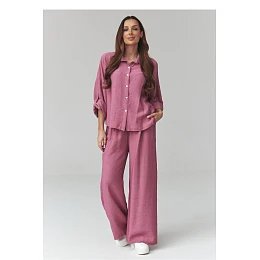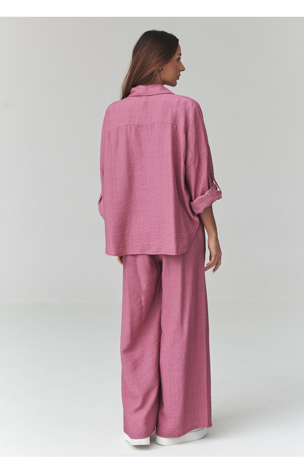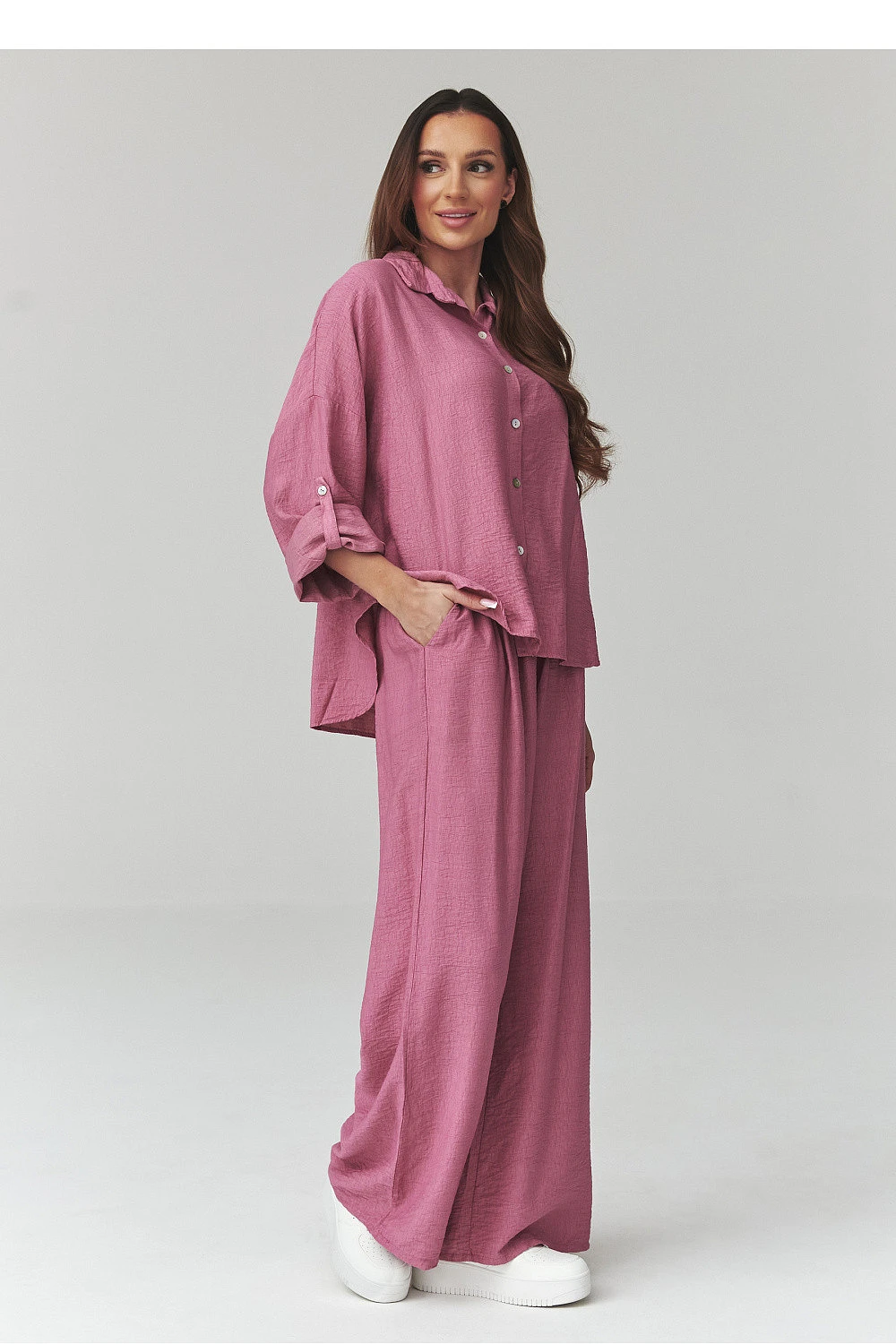 Stylový dámský set v moderních odstínech je ideální volbou na jaro a léto. Sestava se skládá z volné košile s knoflíky a širokých kalhot s elastickým pasem, co zaručuje maximální pohodlí a volnost pohybu. Vyrobeno z lehkého, prodyšného materiálu. Tkanina je měkká, prodyšná a příjemná k pokožce, což zajišťuje pohodlí po celý den. Tento dámský set s košilí a kalhotami je skvělou základnou pro mnoho stylizací. Kombinujte ho se teniskami, sandály nebo žabkami, abyste vytvořili neformální vzhled, nebo přidejte elegantní doplňky pro sofistikovanější efekt. Vyrobeno v Itálii.