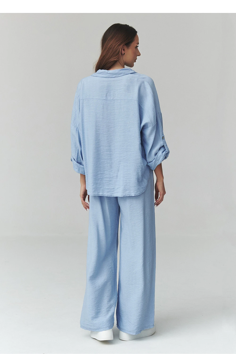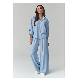 Elegantní dámský set v módních odstínech je ideální nabídkou na jaro a léto. Sada se skládá z volné košile zapínací na knoflíky a širokých kalhot s elastickým pasem, co zaručuje maximální pohodlí nošení a volnost pohybů. Vyrobeno z lehkého, prodyšného materiálu. Tkanina je měkká, prodyšná a příjemná na kůži, díky čemuž poskytuje pohodlí po celý den. Tento dámský set s košilí a kalhotami je skvělý základ pro mnoho stylizací. Spojte jej s teniskami, sandály nebo žabkami, abyste vytvořili ležérní vzhled, nebo přidejte elegantní doplňky, abyste dosáhli elegantnějšího efektu. Vyráběno v Itálii.