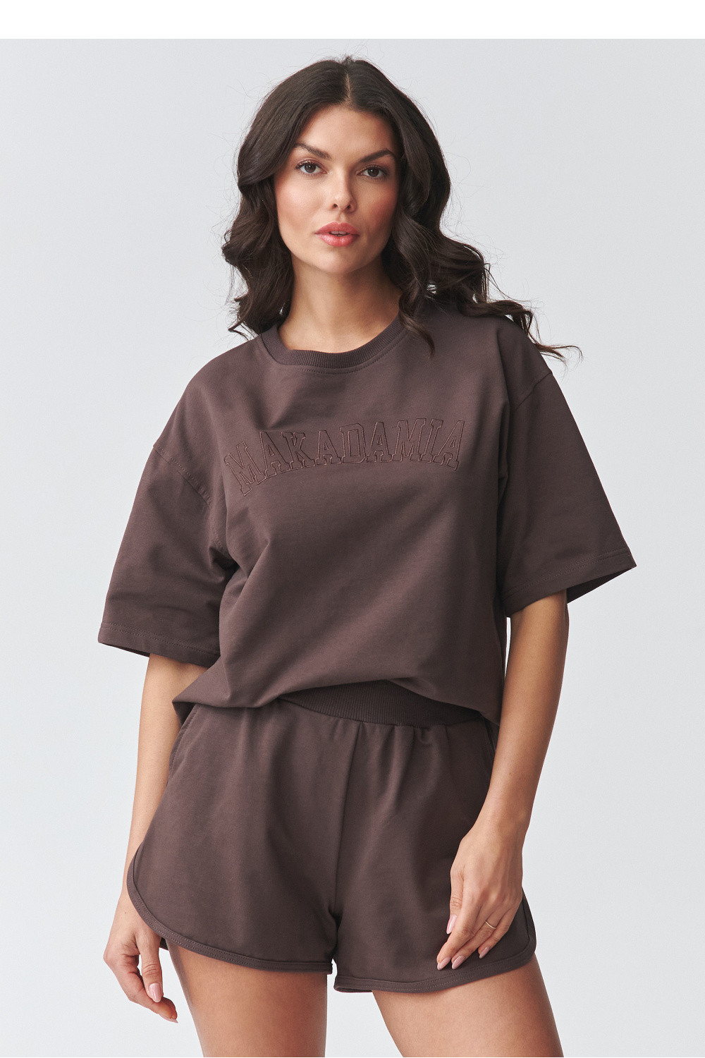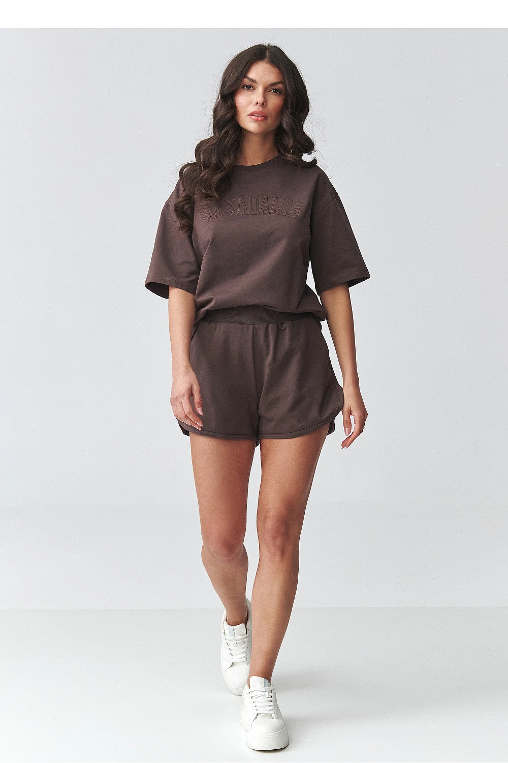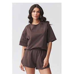 Elegantní dámský set se šortkami je ideální volbou pro ženy, které oceňují pohodlí a moderní minimalistický styl. Sestava se skládá z volného trička s volným střihem a pohodlných šortek s elastickým pasem, vytvářející souvislý a nadčasový vzhled. Tento letní dámský set se skvěle hodí na procházky, nákupy, dovolenou nebo jako pohodlný domácí oděv. Díky univerzálnímu střihu můžete nosit set jako hotový outfit nebo kombinovat jednotlivé kousky, vytvářející různé outfity. Tričko s jednoduchým střihem zajistí volnost pohybu a pohodlí nošení, zatímco šortky s pohodlným pasem se skvěle přizpůsobí postavě. Jedná se o módní dámský casual set, který spojuje funkčnost s aktuálními trendy. Pokud hledáte pohodlné a stylové řešení na teplé dny, tento letní dámský set bude skvělou volbou. Je to také skvělá alternativa k klasickému teplákovému oblečení, lehká, prodyšná a neuvěřitelně pohodlná.