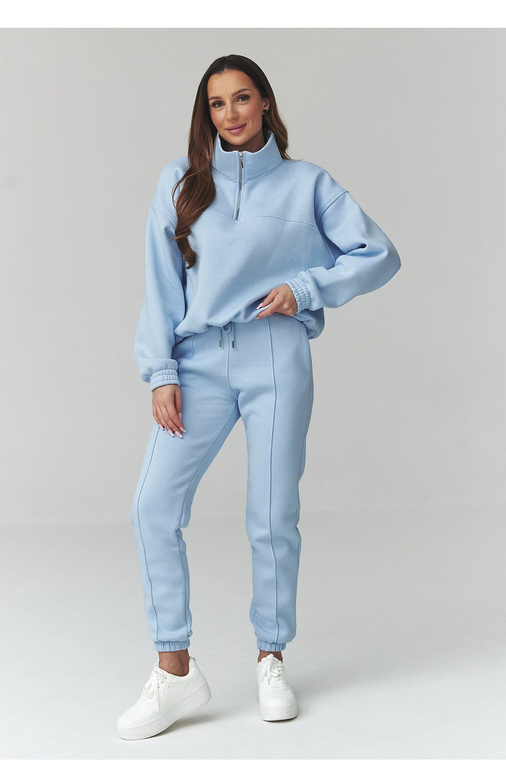 Stylový dámský teplákový set v univerzální velikosti je ideální kombinací pohodlí a módního vzhledu. Vyrobený z měkké, příjemné látky, skvěle se hodí jak na každý den, tak i během víkendového relaxu nebo cestování. Klasické barvy dodávají celku univerzální charakter a snadno se kombinují s různými stylizacemi. Další výhodou setu jsou ozdobné švy běžící podél nohavic, které opticky prodlužují nohy. Mikina s volným střihem s krátkým zipem pod krkem, s nastavitelnými šňůrkami na spodku, zajistí pohodlí nošení a módní, sportovně-neslušný vzhled. Teplákové kalhoty s elastickým pasem mají zúžené nohavice se stahovacími pásky, které zdůrazňují moderní vzhled.