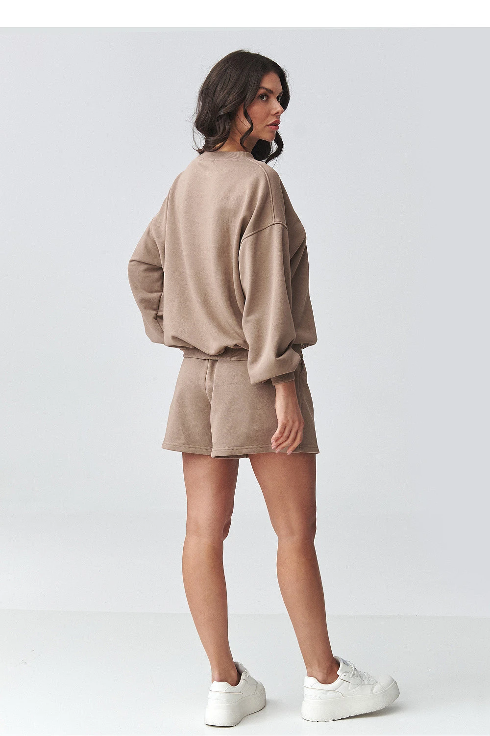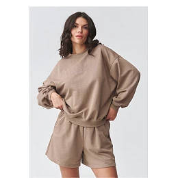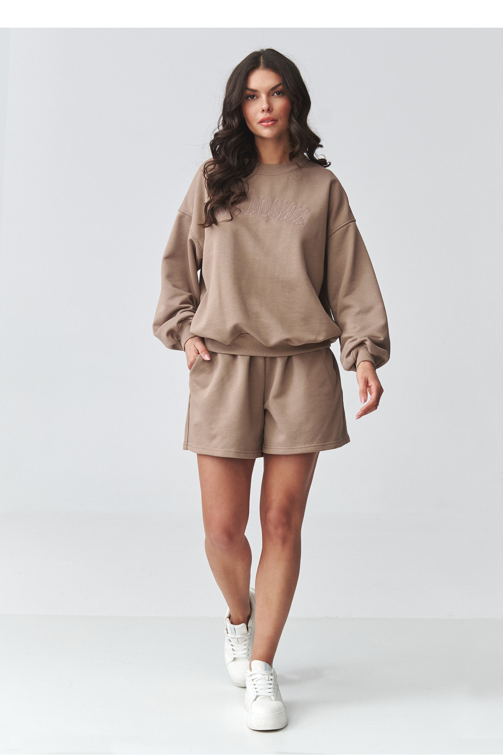 Elegantní dresový set je ideální kombinací pohodlí a moderního designu. Součástí setu je oversized mikina s jemným potiskem a volné dresové šortky. Skvělá volba pro ženy, které si cení módního dámského setu na každý den, jak pro relaxaci doma, tak pro výlet do města. Dámská dresová mikina je navržena ve volném střihu, který zajišťuje maximální pohodlí a volnost pohybu. Snížené ramena a pečlivě zpracované lemy zdůrazňují její ležérní charakter. Jemný potisk na přední straně dodává celku minimalistickou eleganci, zapadající do aktuálních trendů. Dresové šortky s vysokým pasem zaručují pohodlí a skvělé přizpůsobení postavě. Elastický pas a měkká, příjemná na dotek pletenina zajišťují, že set se skvěle hodí jako pohodlný dámský dres na teplejší dny. Tento oversized dresový set je must-have v šatníku každé ženy, která hledá univerzální a nadčasová řešení. Skvěle ladí se sneakersy, vytvářející módní sportovní stylizaci, ale stejně dobře vypadá i v casual verzi. Vsadte na pohodlný dámský set a užívejte si stylu bez kompromisů.