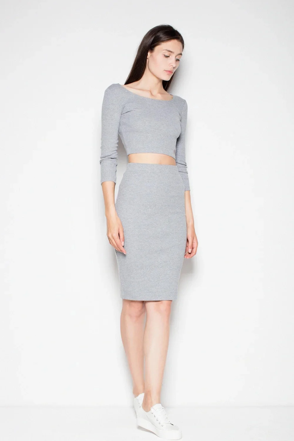 Bavlněná souprava. Top s dlouhými rukávy a klasický střih tužkové sukně.