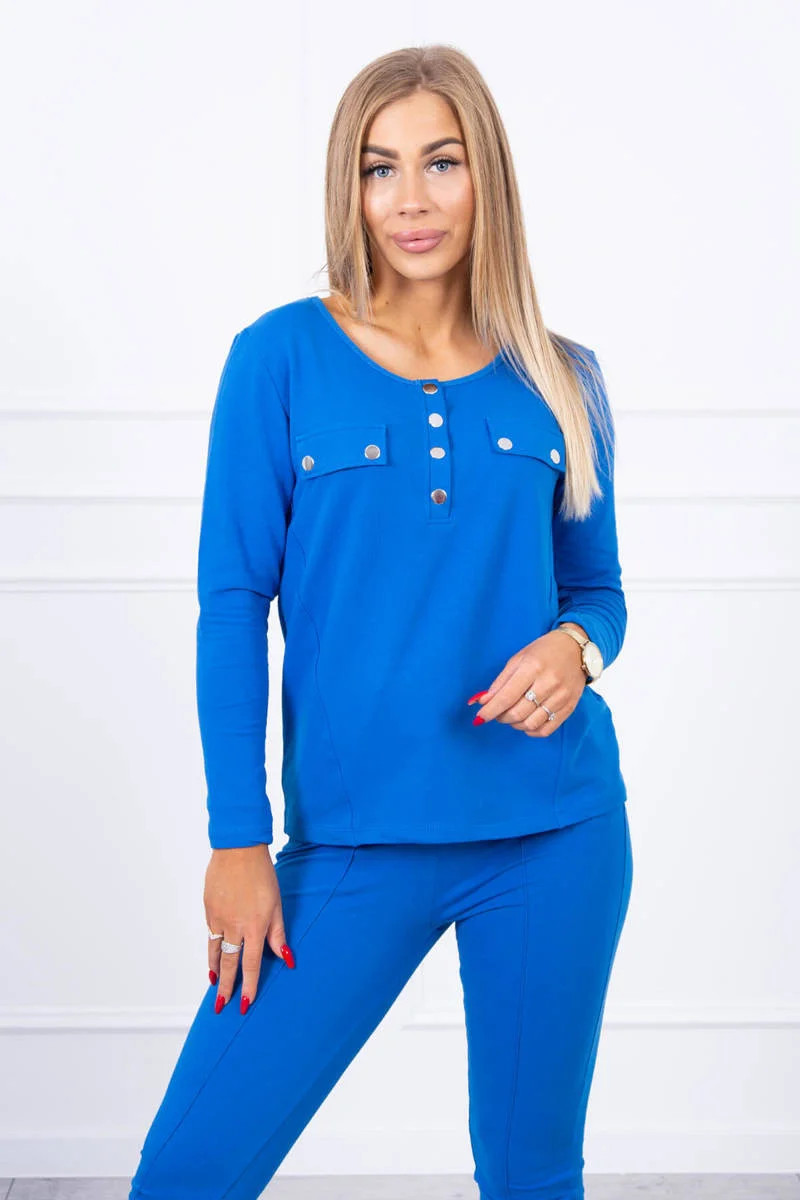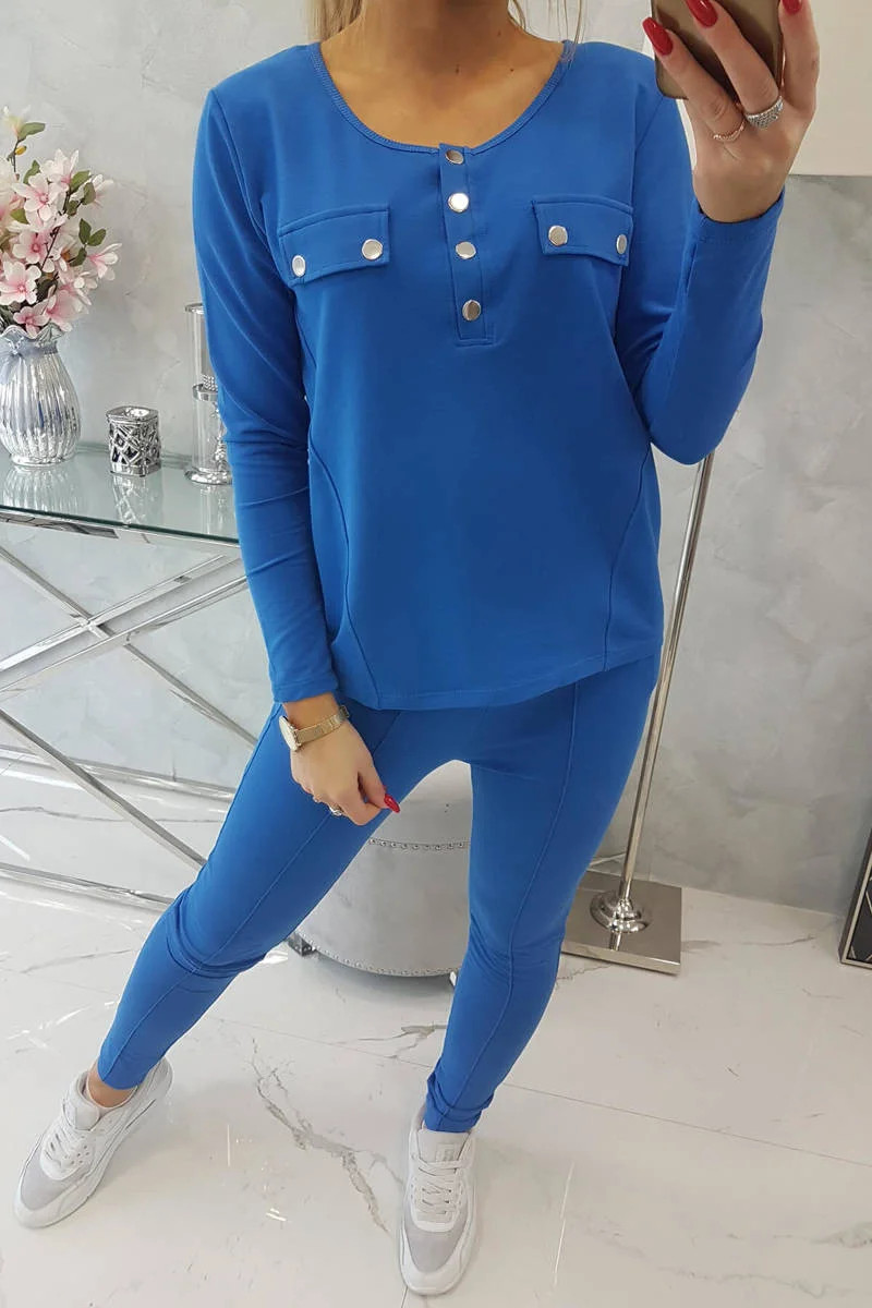 Představujeme vám sadu halenky a kalhot. Halenka má zapínání ve výstřihu na patentky. Kalhoty s kapsami a zavazováním v pase. Sada je vyrobena z vysoce kvalitního materiálu. Velikost je univerzální a vyhovuje dámám velikosti S, M nebo L.