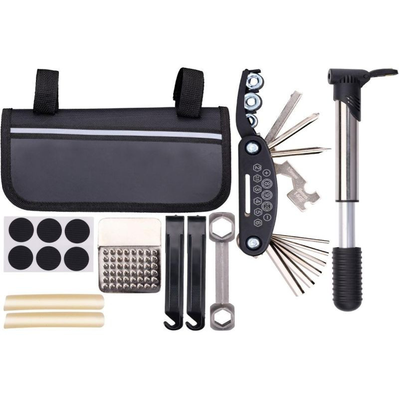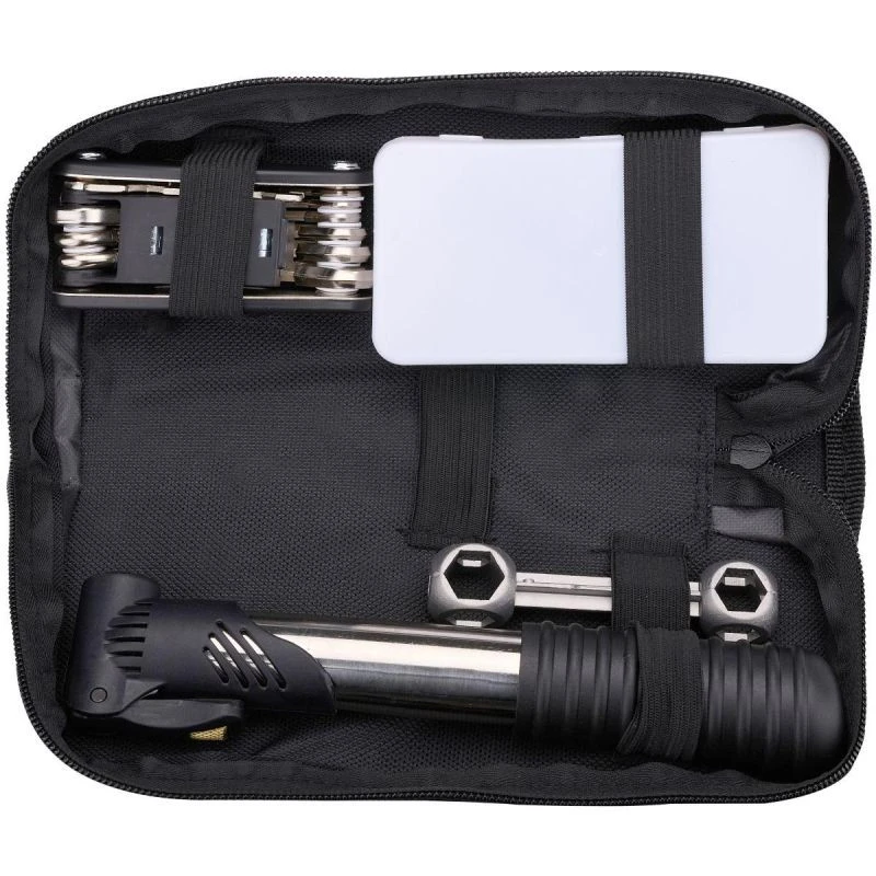 Sada se skládá z nejrůznějších praktických nástrojů, a protože je zabalena v pouzdře na suchý zip, můžete ji připevnit na rám a vzít si ji všude s sebou.