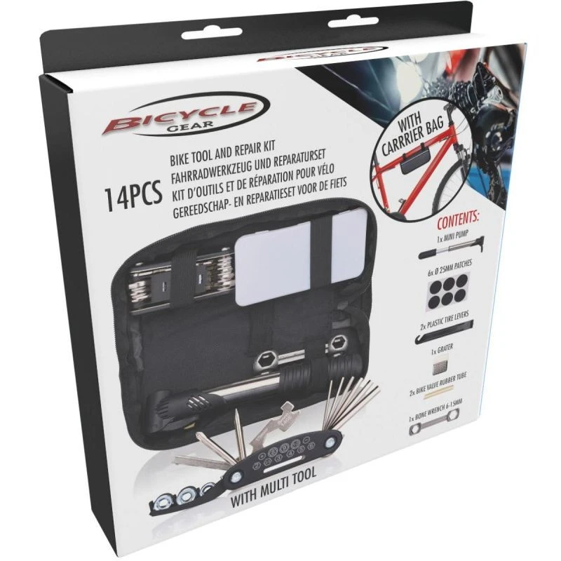 Hledáte všestrannou sadu nářadí na opravu jízdního kola? Sada nářadí na opravu jízdního kola BICYCLE GEARS KIT 14 ELEMENTS IN BICYCLE GEAR ETULE vám pomůže dostat vaše kolo zpět na "kola"!