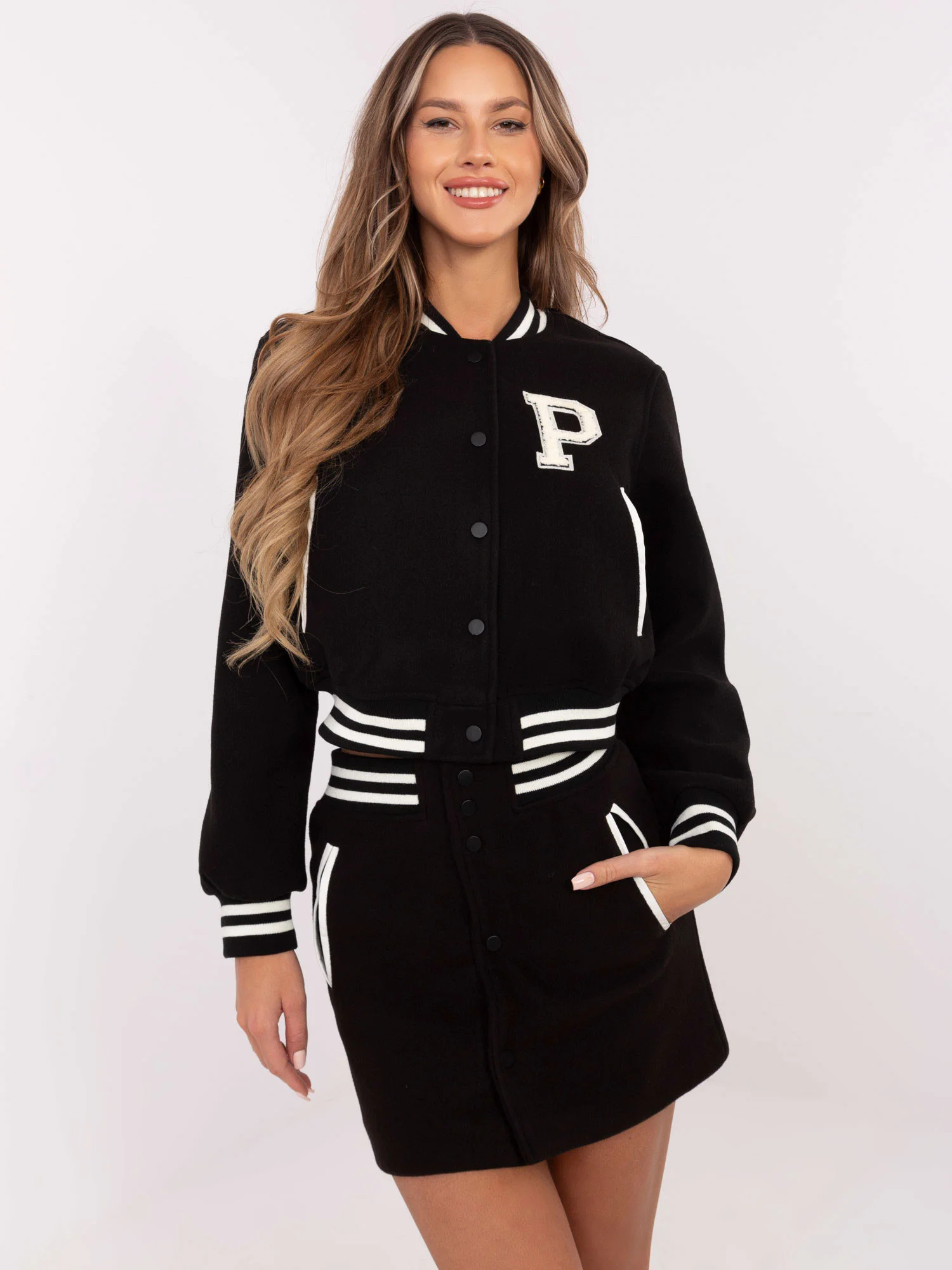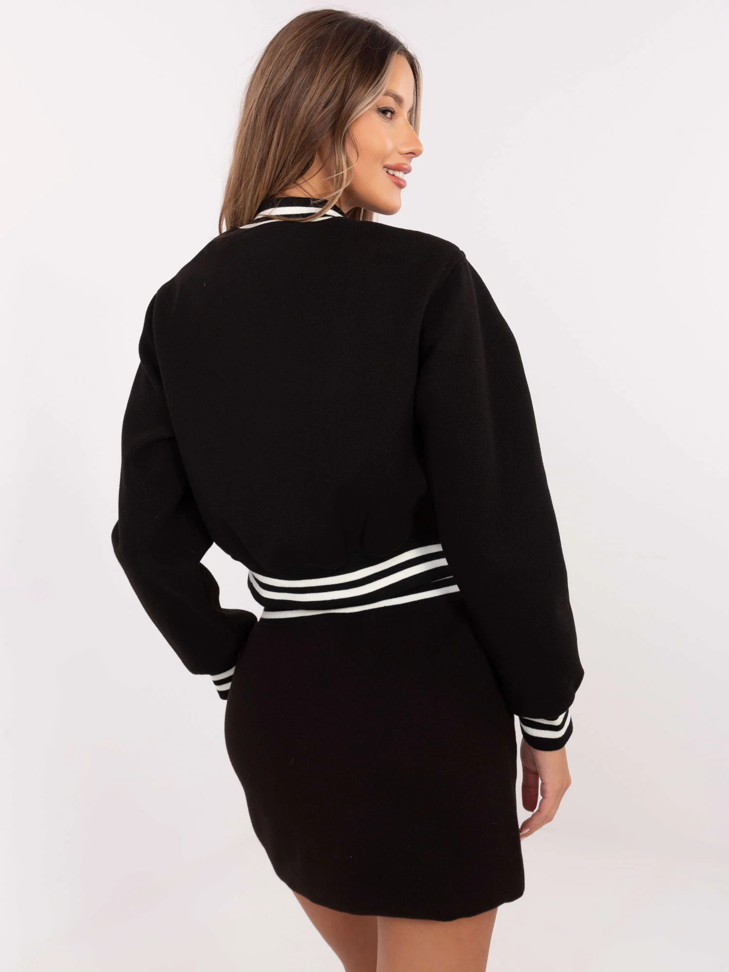 Modelka má na sobě velikost S/M. Rozměry modelky: výška 176 cm, prsa 90 cm, pas 62 cm, boky 94 cm.