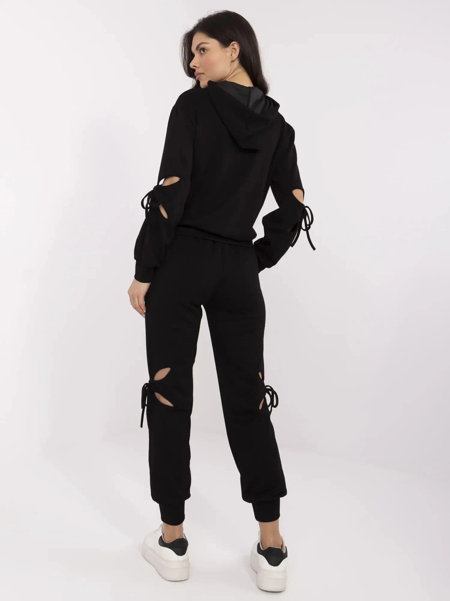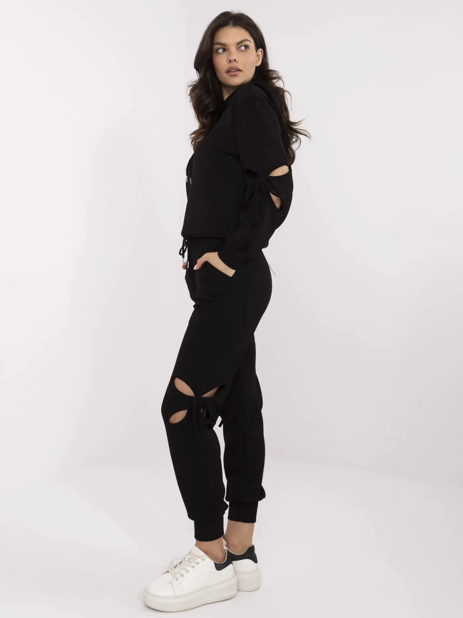 Rozměry kalhot v jedné velikosti: šířka v pase - 34 cm (na plocho), šířka v pase - 62 cm (při natažení), výška v pase - 29 cm, šířka v bocích - 50 cm, celková délka - 99 cm.