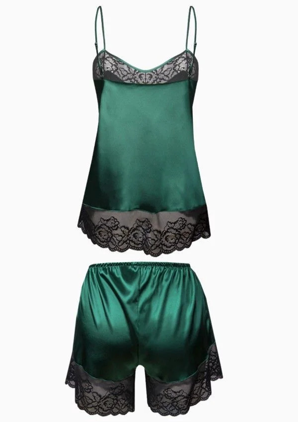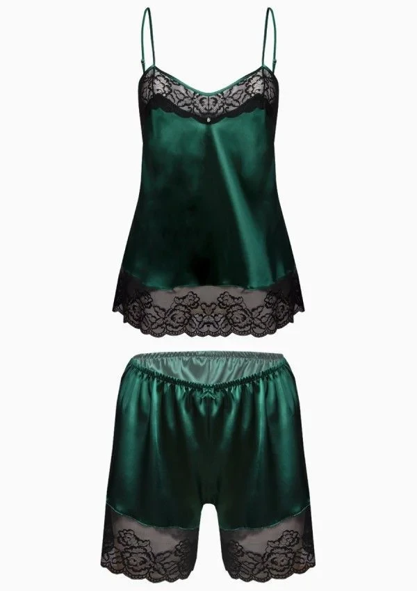 Zelená, smaragdová barva v kombinaci se saténem je v současné době něco velmi módního. Prezentuje se elegantně, smyslně, žensky a nesmírně krásně. Neváhejte a sáhněte po této novince od DKaren - Remi, dvoudílném kompletu spodního prádla, ve kterém se báječně uvolníte. Charakter mu dodává černá krajka. Složení: 100% polyester.