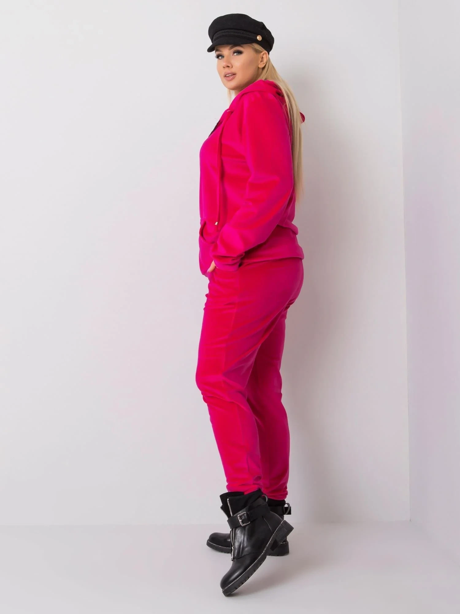 Różowy komplet welurowy plus size.