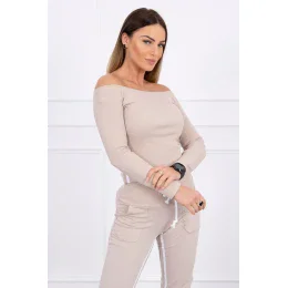 Představujeme vám sadu mikiny a kalhot. Souprava má kalhoty s vysokým pasem. Halenka z žebrované tkaniny. Dvojité lemování na kalhotách a halence. Kalhoty mají kapsy. Sada je vyrobena z vysoce kvalitního materiálu. Velikost je univerzální a vyhovuje dámám, které nosí velikost S, M nebo L.