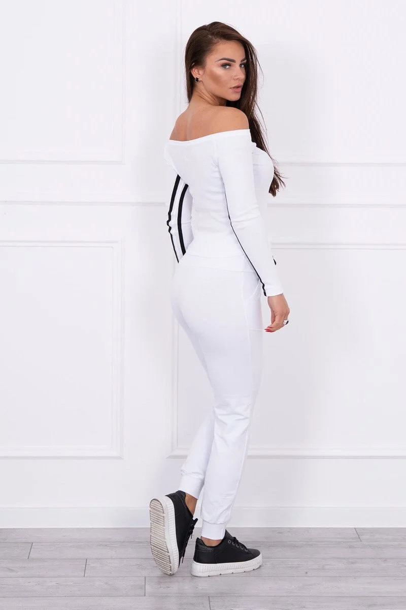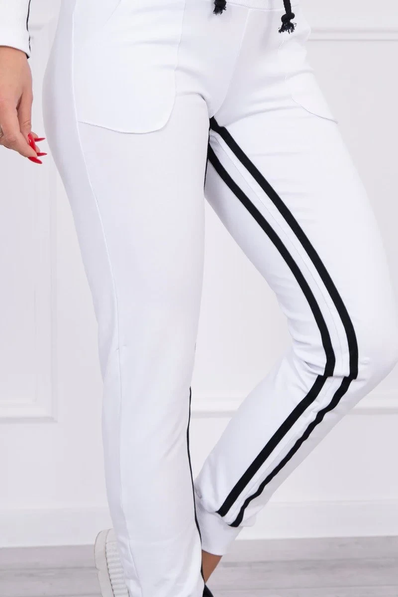 Představujeme vám sadu mikiny a kalhot. Souprava má kalhoty s vysokým pasem. Halenka z žebrované tkaniny. Dvojité pruhy na kalhotách a halence. Kalhoty mají kapsy. Sada je vyrobena z vysoce kvalitního materiálu. Velikost je univerzální a vyhovuje dámám, které nosí velikost S, M nebo L.