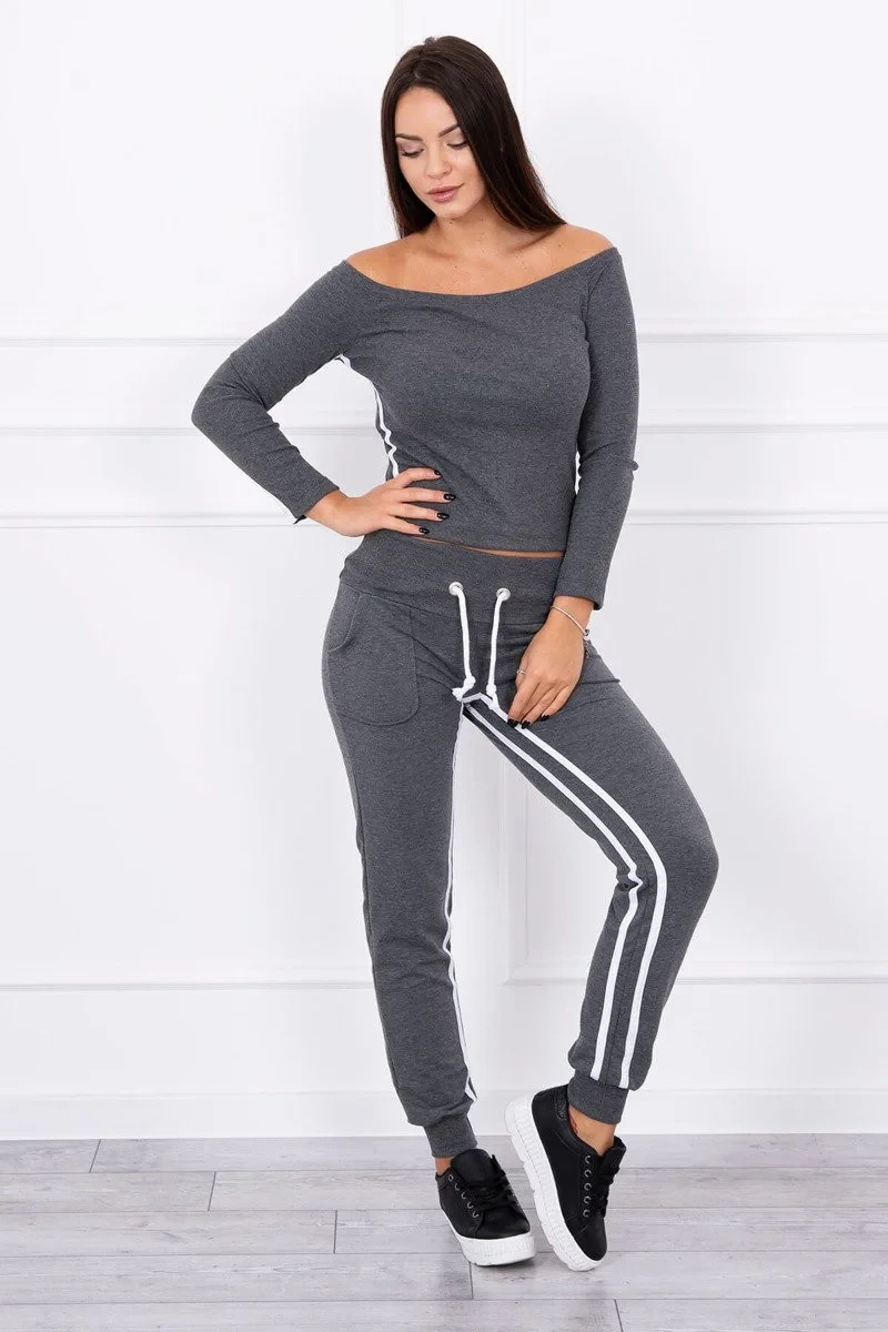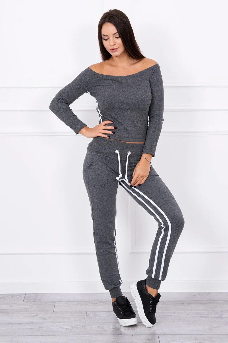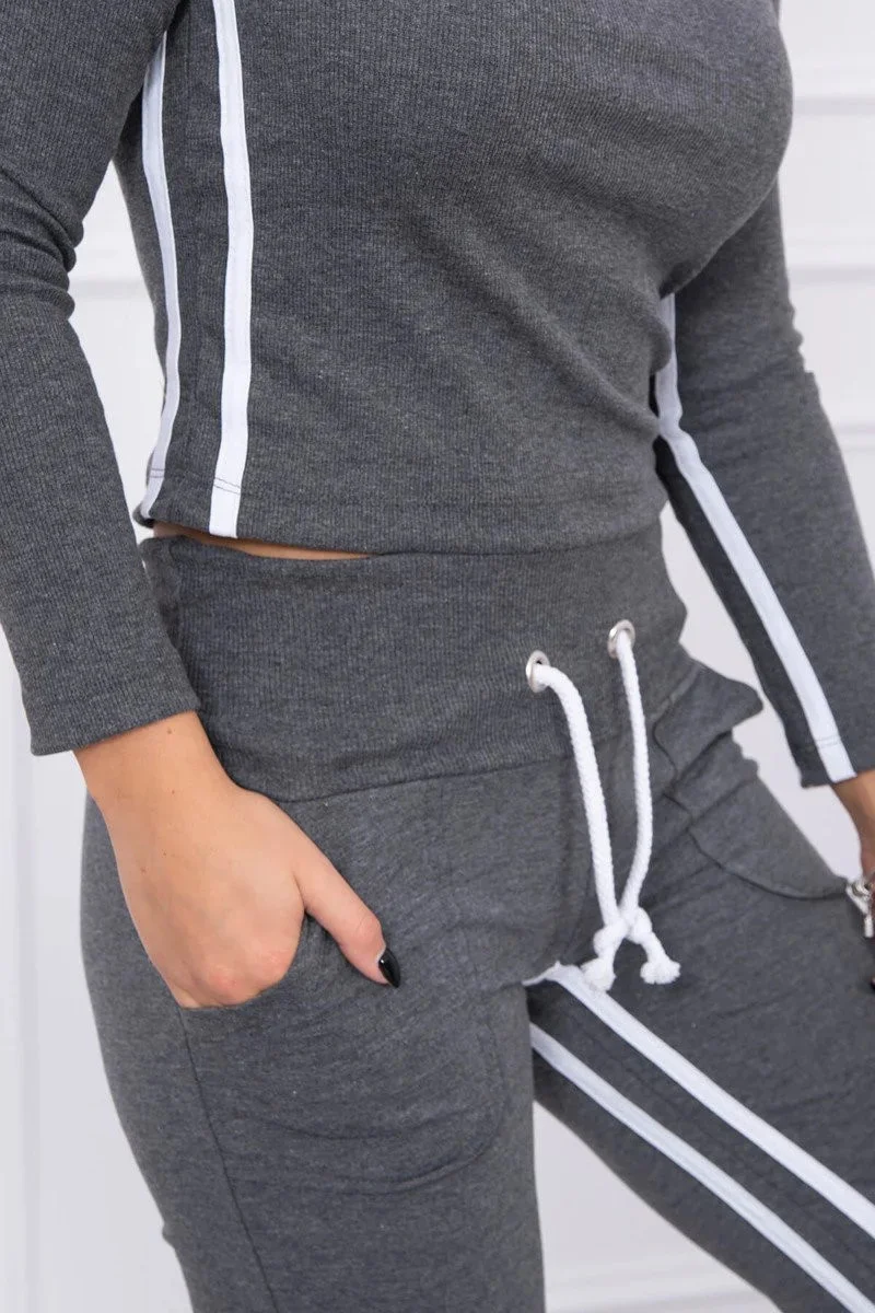Představujeme vám sadu mikiny a kalhot. Souprava má kalhoty s vysokým pasem. Halenka z žebrované tkaniny. Dvojité lemování na kalhotách a halence. Kalhoty mají kapsy. Sada je vyrobena z vysoce kvalitního materiálu. Velikost je univerzální a vyhovuje dámám, které nosí velikost S, M nebo L.