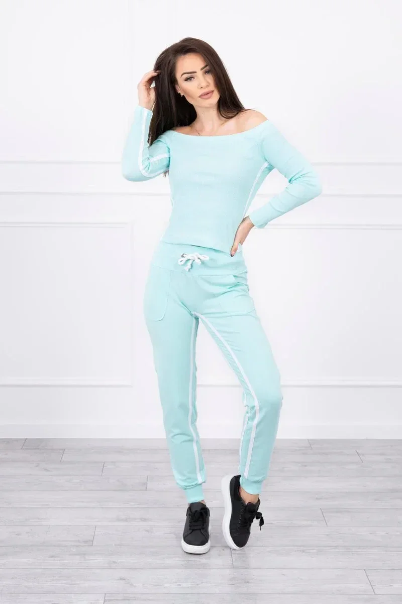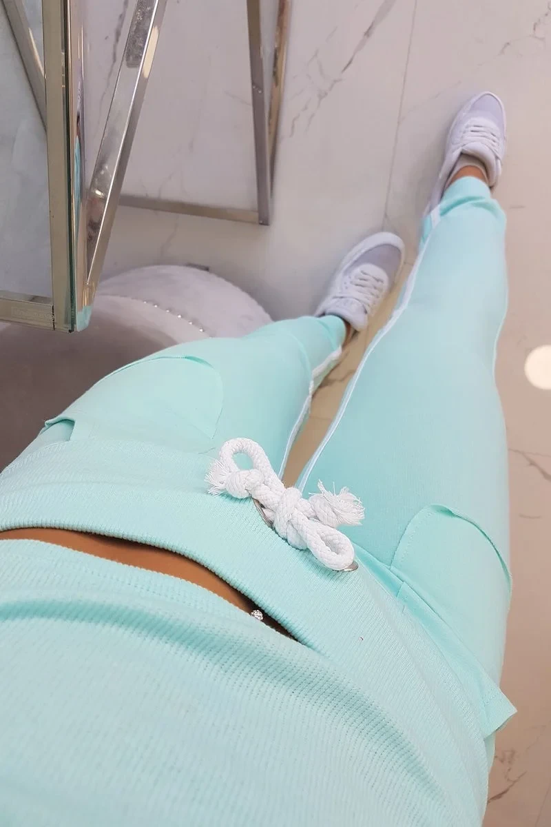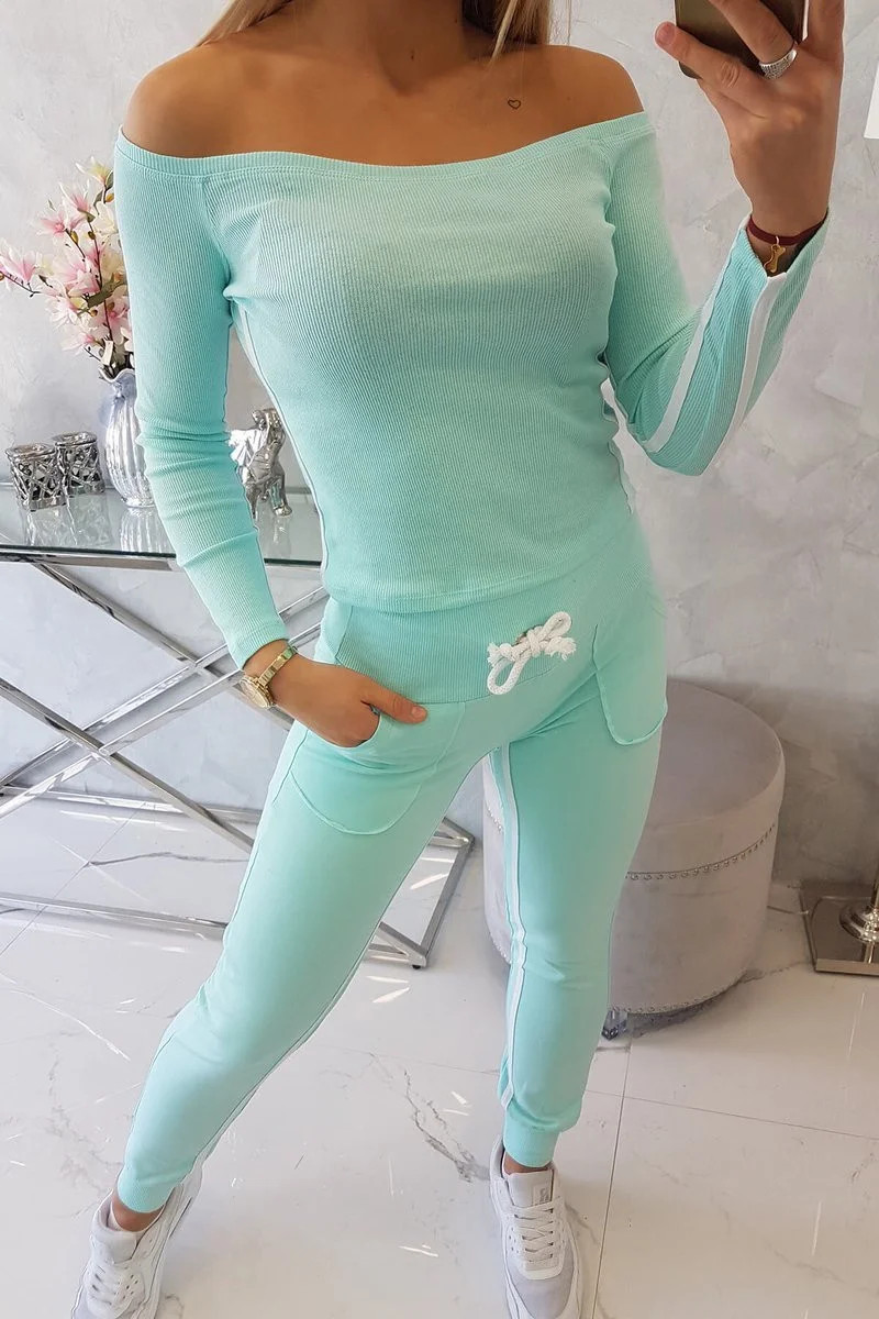 Představujeme vám sadu mikiny a kalhot. Souprava má kalhoty s vysokým pasem. Halenka z žebrované tkaniny. Dvojité pruhy na kalhotách a halence. Kalhoty mají kapsy. Sada je vyrobena z vysoce kvalitního materiálu. Velikost je univerzální a vyhovuje dámám, které nosí velikost S, M nebo L.