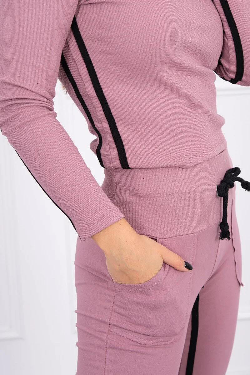 Představujeme vám sadu mikiny a kalhot. Souprava má kalhoty s vysokým pasem. Halenka z žebrované tkaniny. Dvojité lemování na kalhotách a halence. Kalhoty mají kapsy. Sada je vyrobena z vysoce kvalitního materiálu. Velikost je univerzální a vyhovuje dámám, které nosí velikost S, M nebo L.