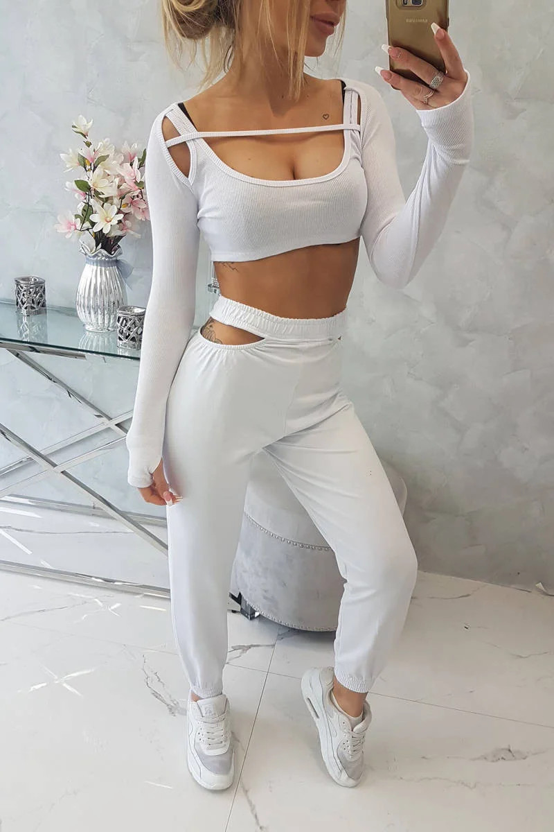 Představujeme vám sadu halenky a kalhot. Halenka z žebrované tkaniny s dlouhými rukávy. Obyčejné kalhoty bez kapes. Sada je vyrobena z vysoce kvalitního materiálu. Velikost je univerzální a vyhovuje dámám velikosti S, M nebo L.