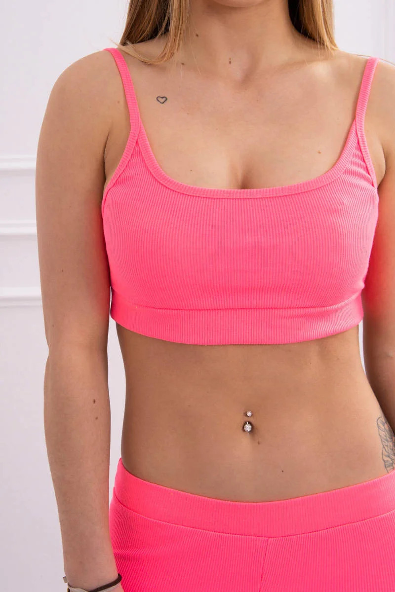 Přidání recenze k Sada s halenkou top žebrovaný růžová neonová