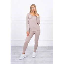 Sada s knoflíkovým výstřihem tmavě béžová