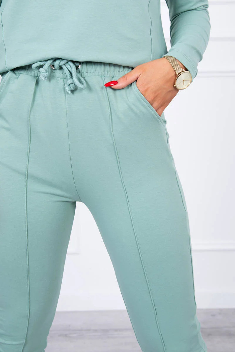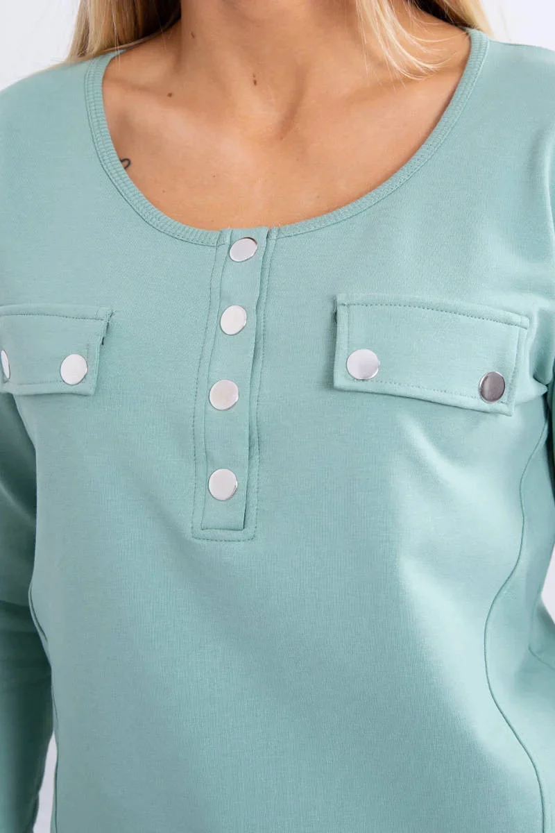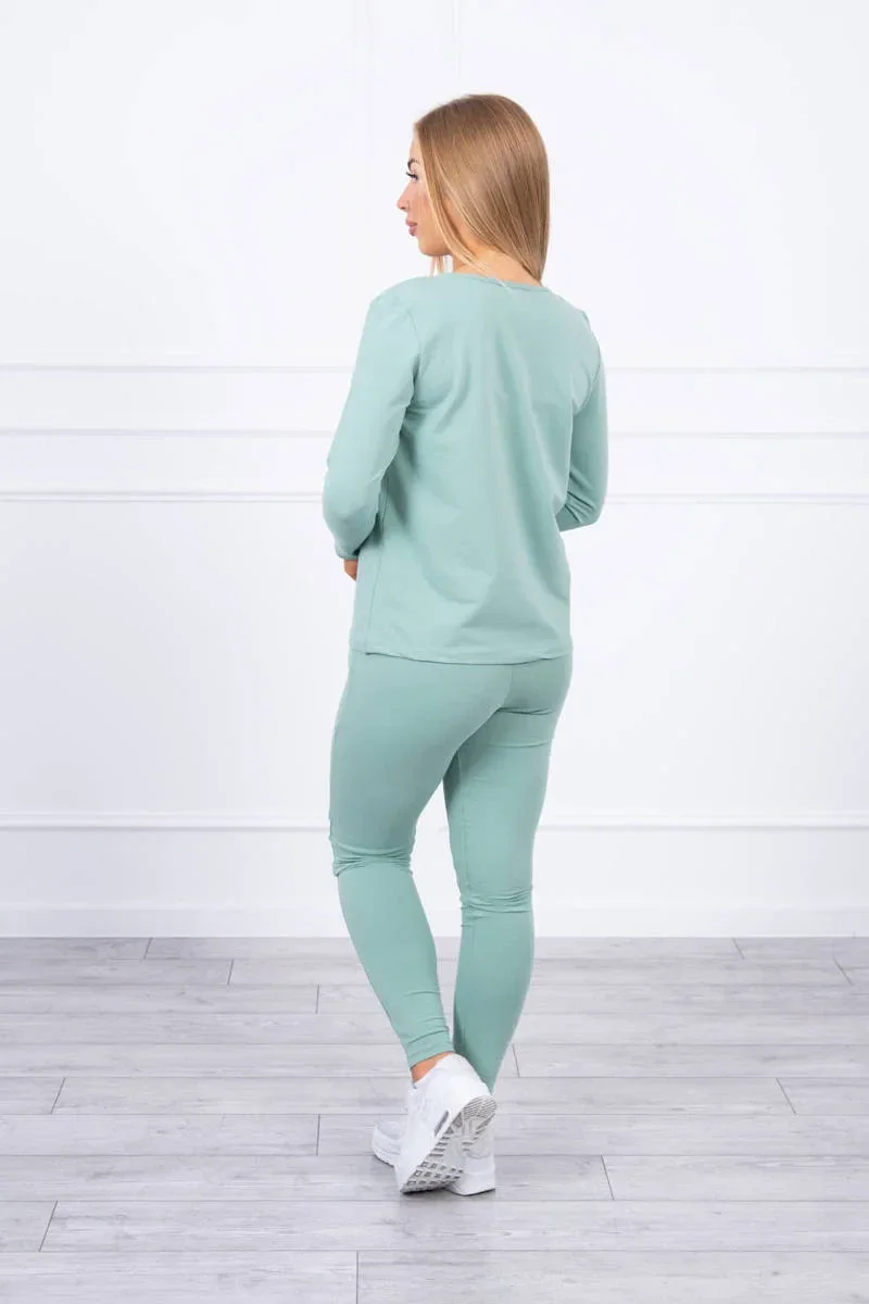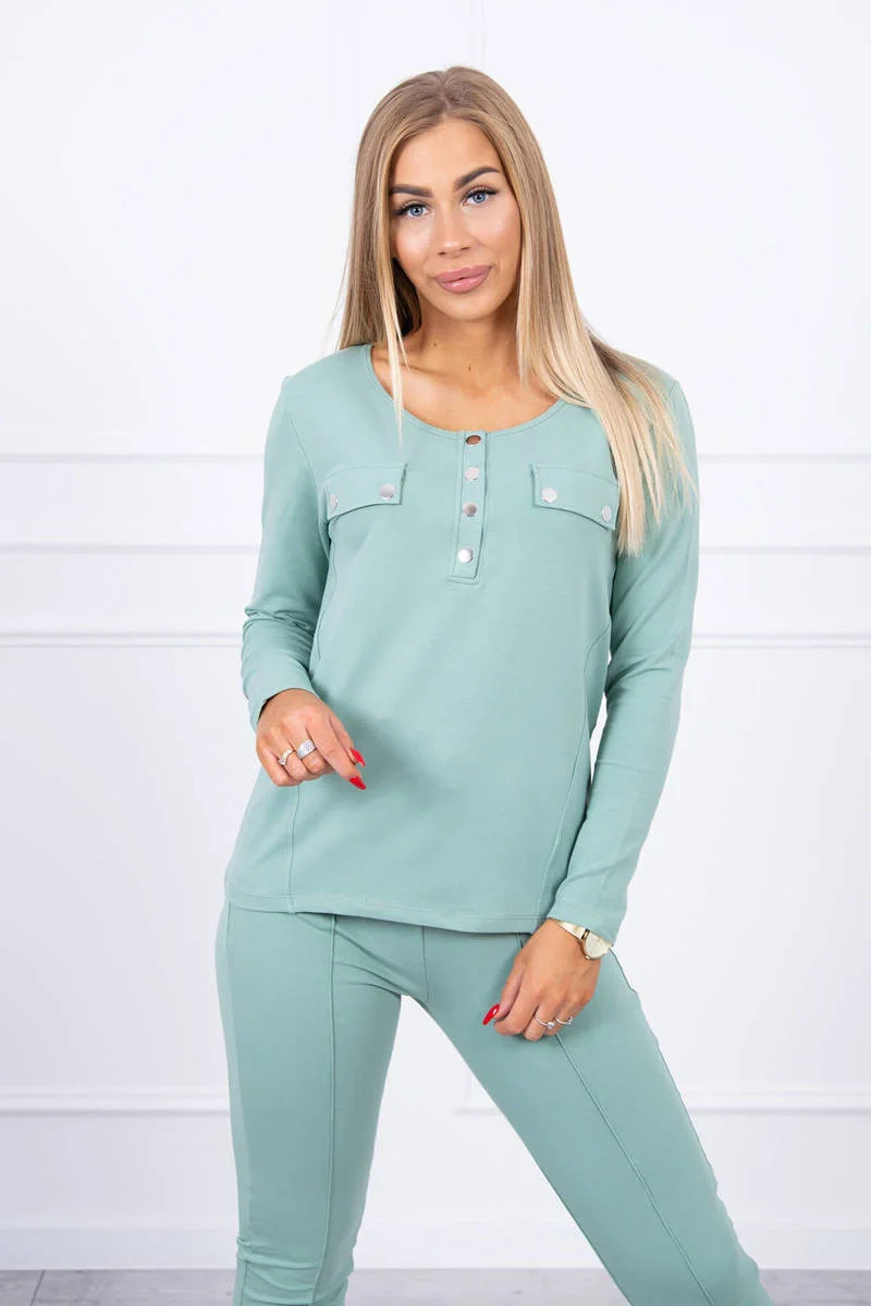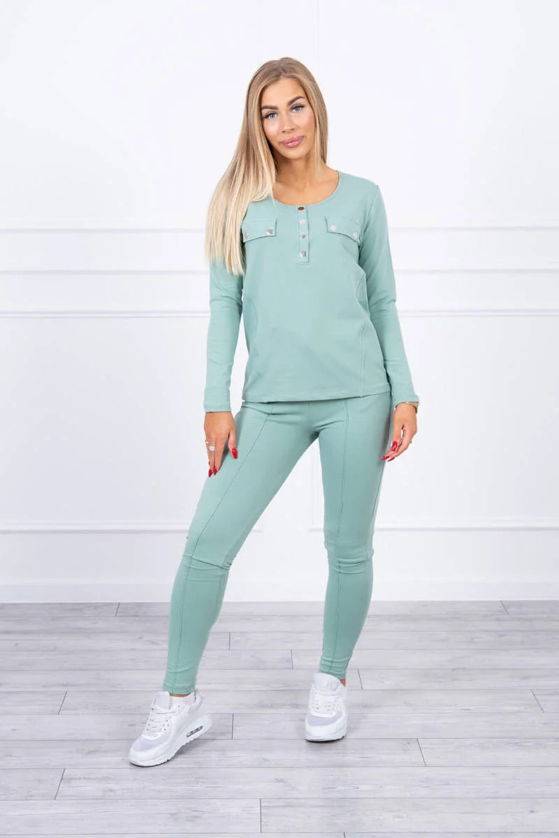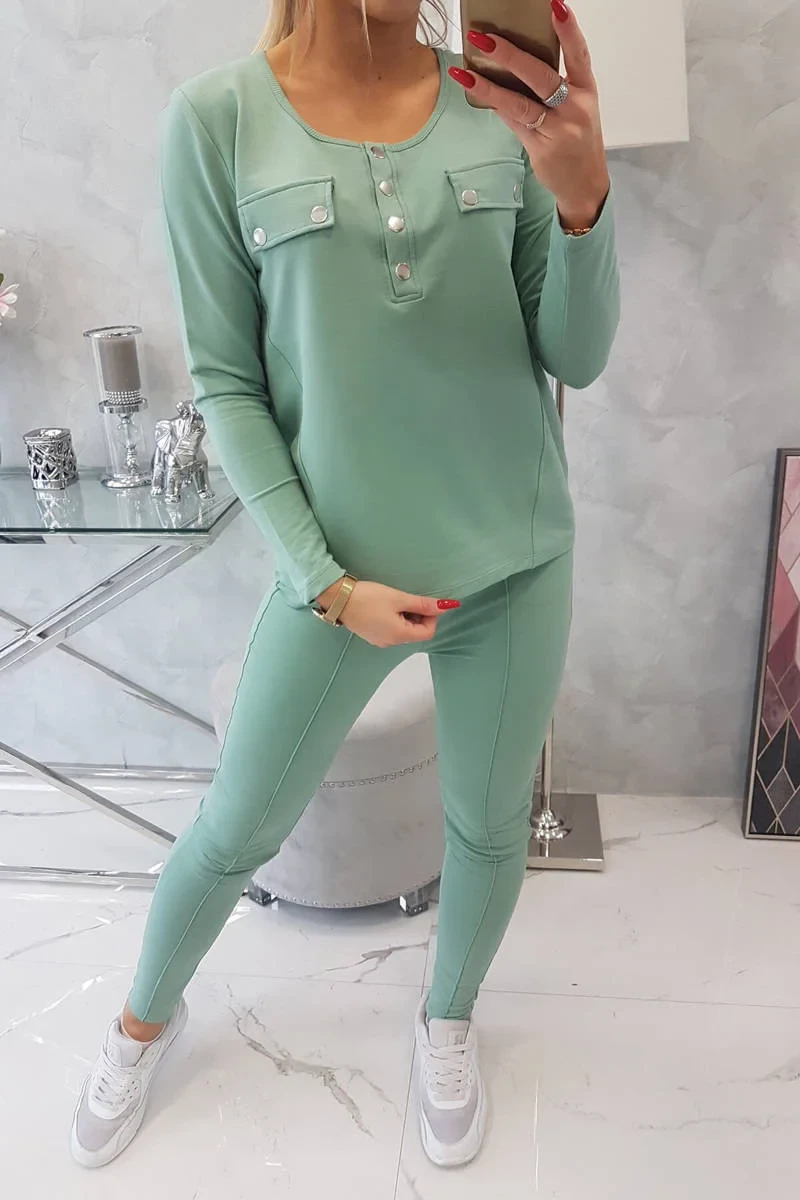 Sada s knoflíkovým výstřihem tmavě mátová