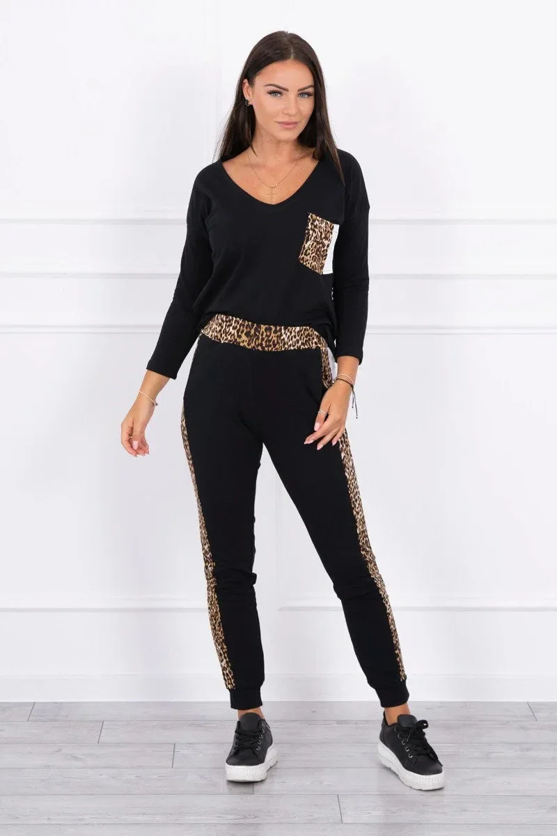 Sada s leopardím potiskem černá