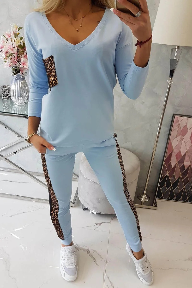 Představujeme vám sadu halenky a kalhot. Sada má vložku s leopardím potiskem. Halenka s kapsičkou na přední straně. Kalhoty mají kapsy. Sada je vyrobena z vysoce kvalitního materiálu. Velikost je univerzální a vyhovuje dámám, které nosí velikost S, M nebo L.