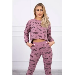 Prezentujemy Państwu komplet bluzki i spodni. Bluzka oraz spodnie z nadrukiem. Komplet wykonany jest z wysokiej jakości materiału. Rozmiar jest uniwersalny i będzie odpowiedni dla Pań w rozmiarze S, M lub L.