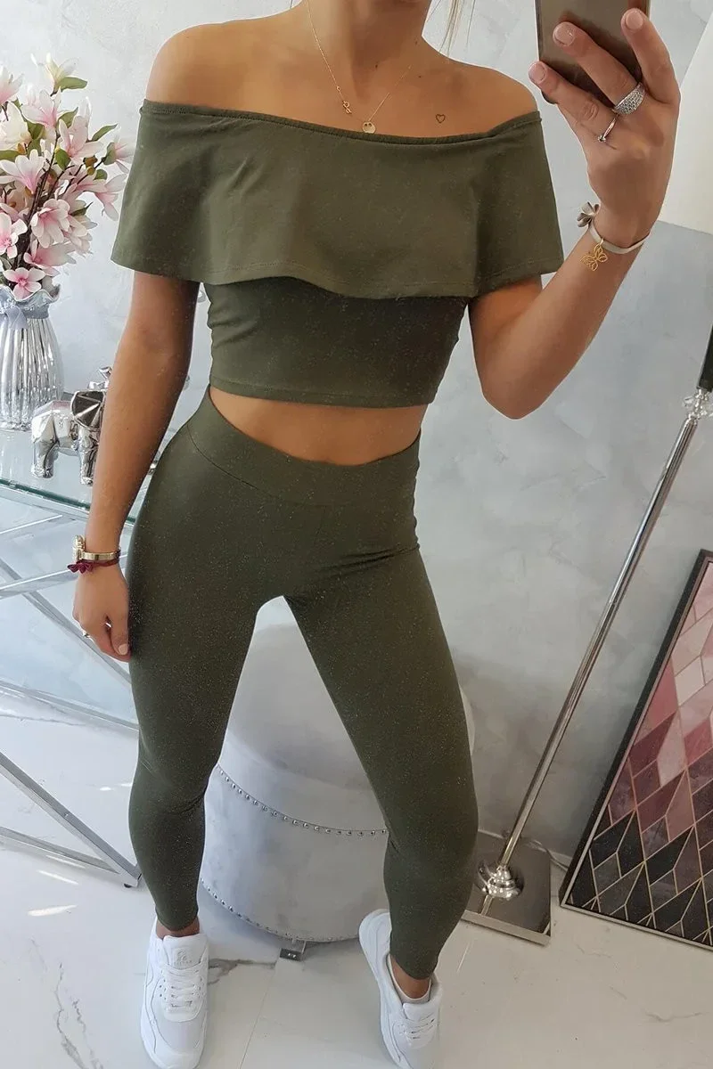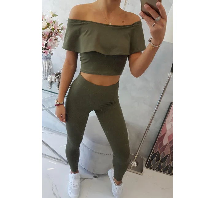 Sada s dvojitými pruhy v khaki barvě