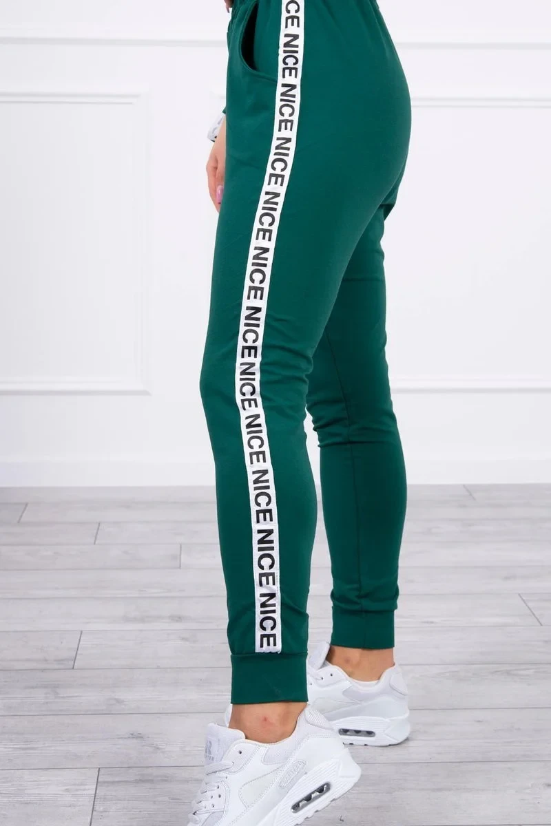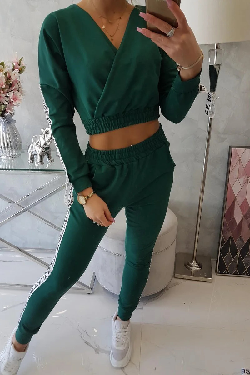 Představujeme vám sadu mikiny a kalhot. Mikina a kalhoty mají ozdobnou stuhu s nápisem. Ve spodní části mikiny je všitá guma. Kalhoty s kapsami. Velmi módní a stylová sada. Sada je vyrobena z vysoce kvalitního materiálu. Velikost je univerzální a vyhovuje dámám velikosti S, M nebo L.